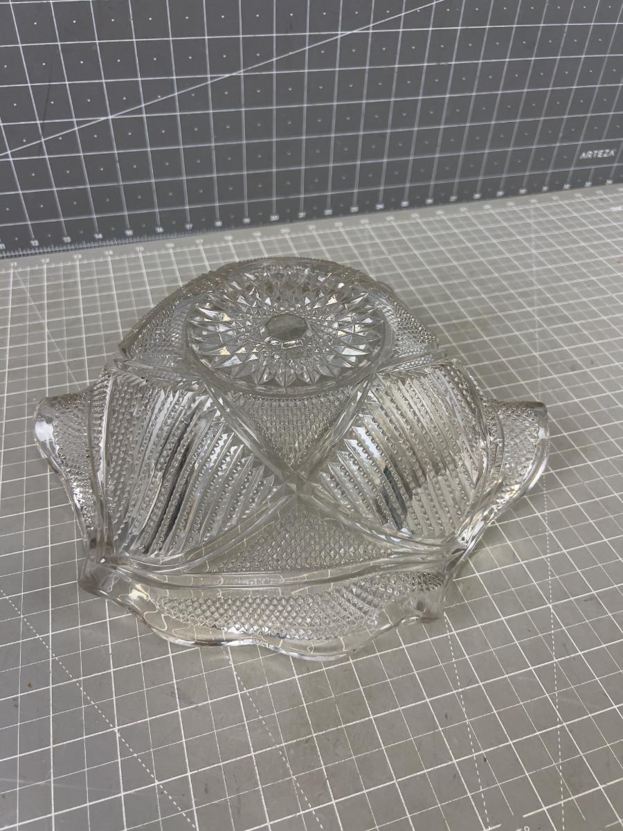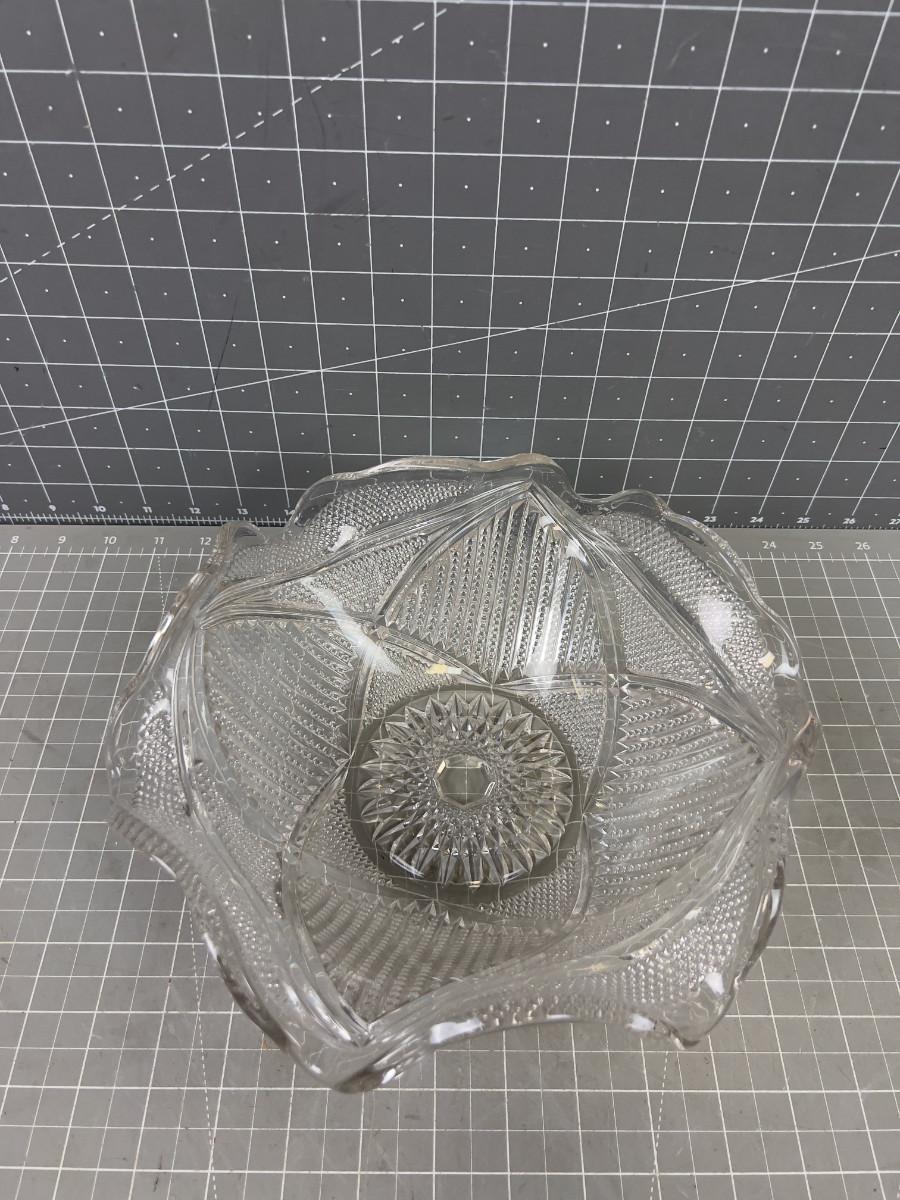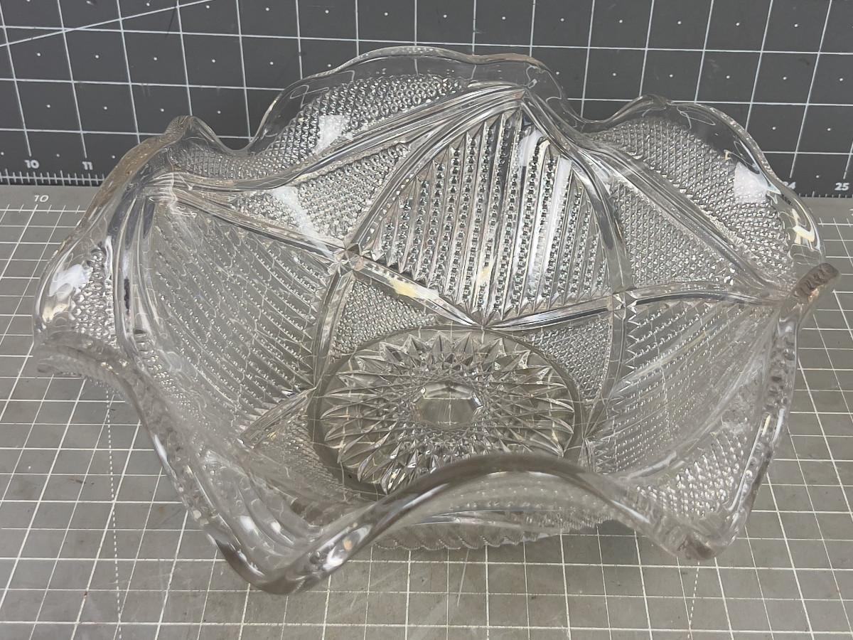 Pressed Glass Serving Bowl, Fluted, Brilliant Cut