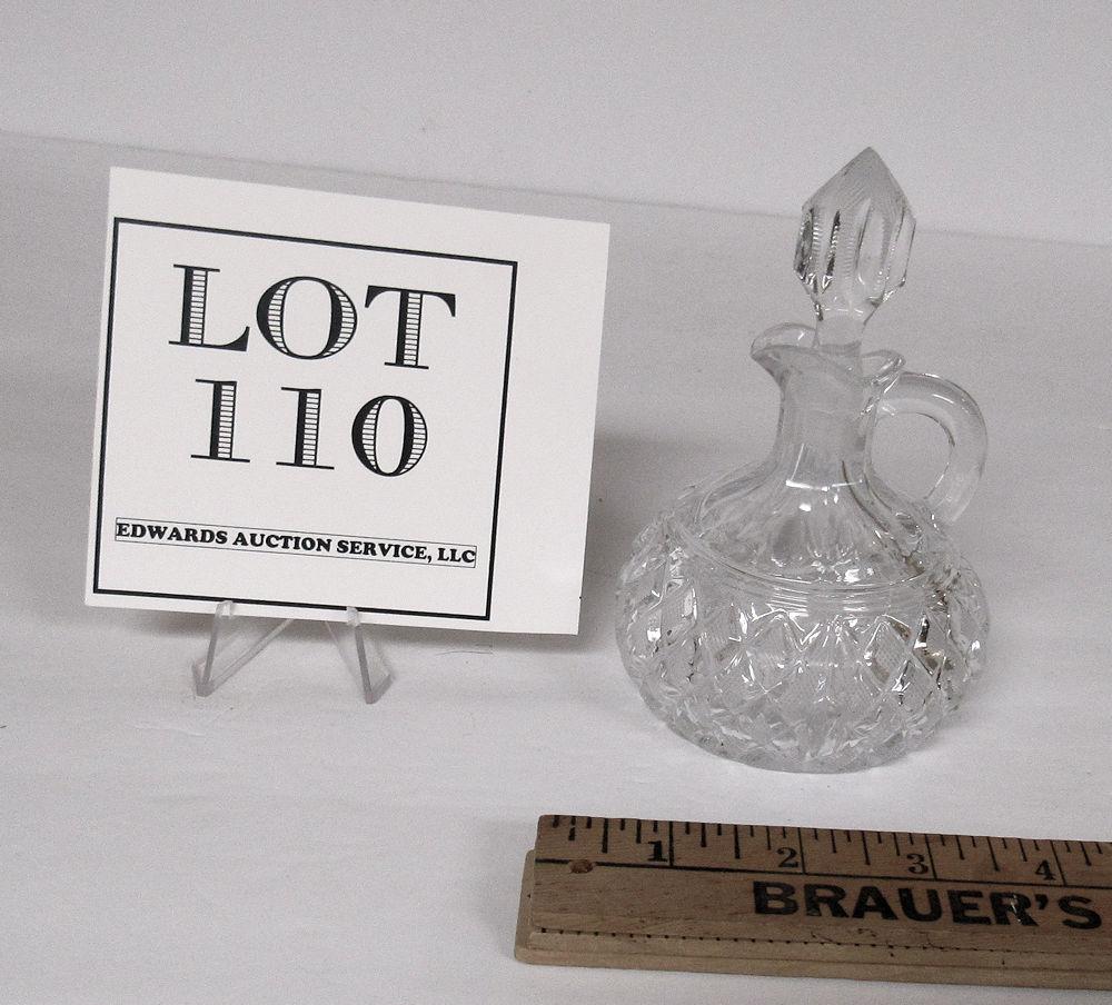 Pressed Glass With Cut Design Cruet with Original Matching Stopper