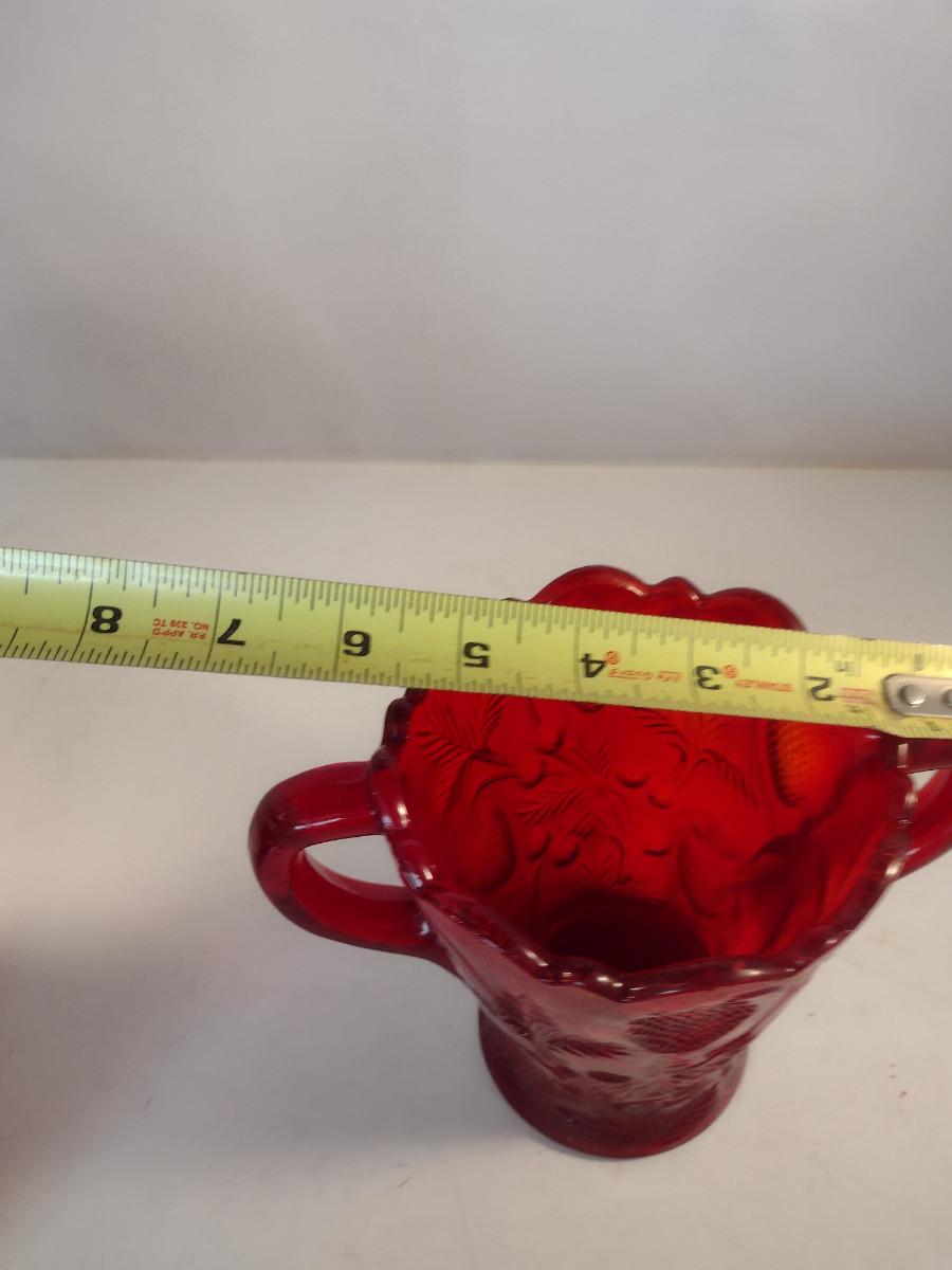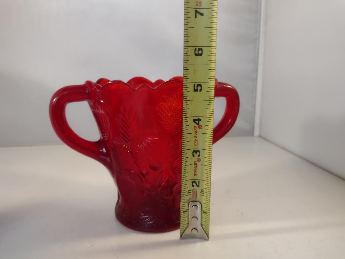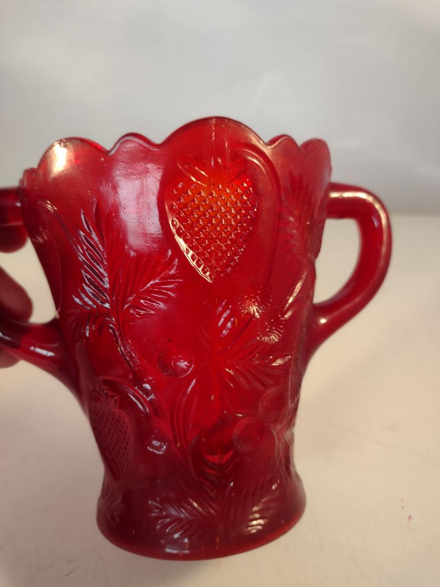 Pressed Strawberry Design Ruby Red Glass Vase with Double Handles- Approx 5" Tall