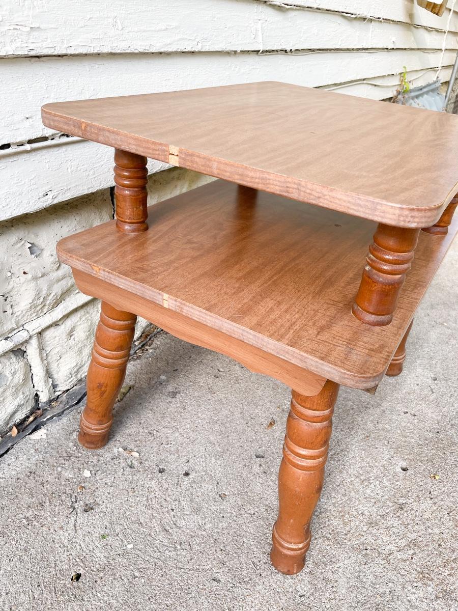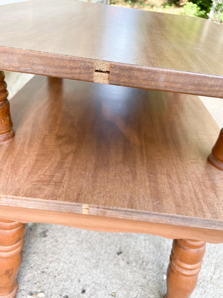 In good condition other than missing pieces of trim on one side, as shown. Not solid wood but still sturdy. Measures approx 24” L x 17.5” W x 22” tall.