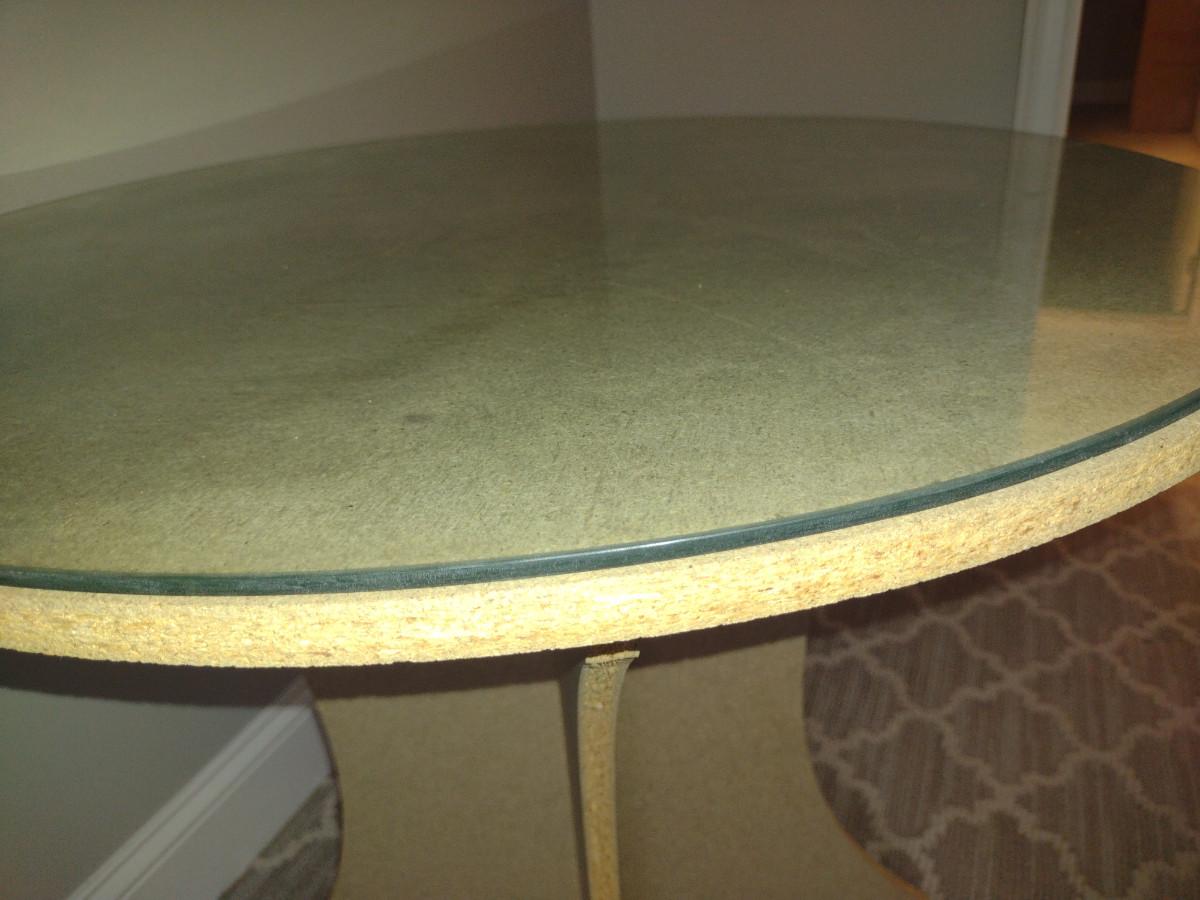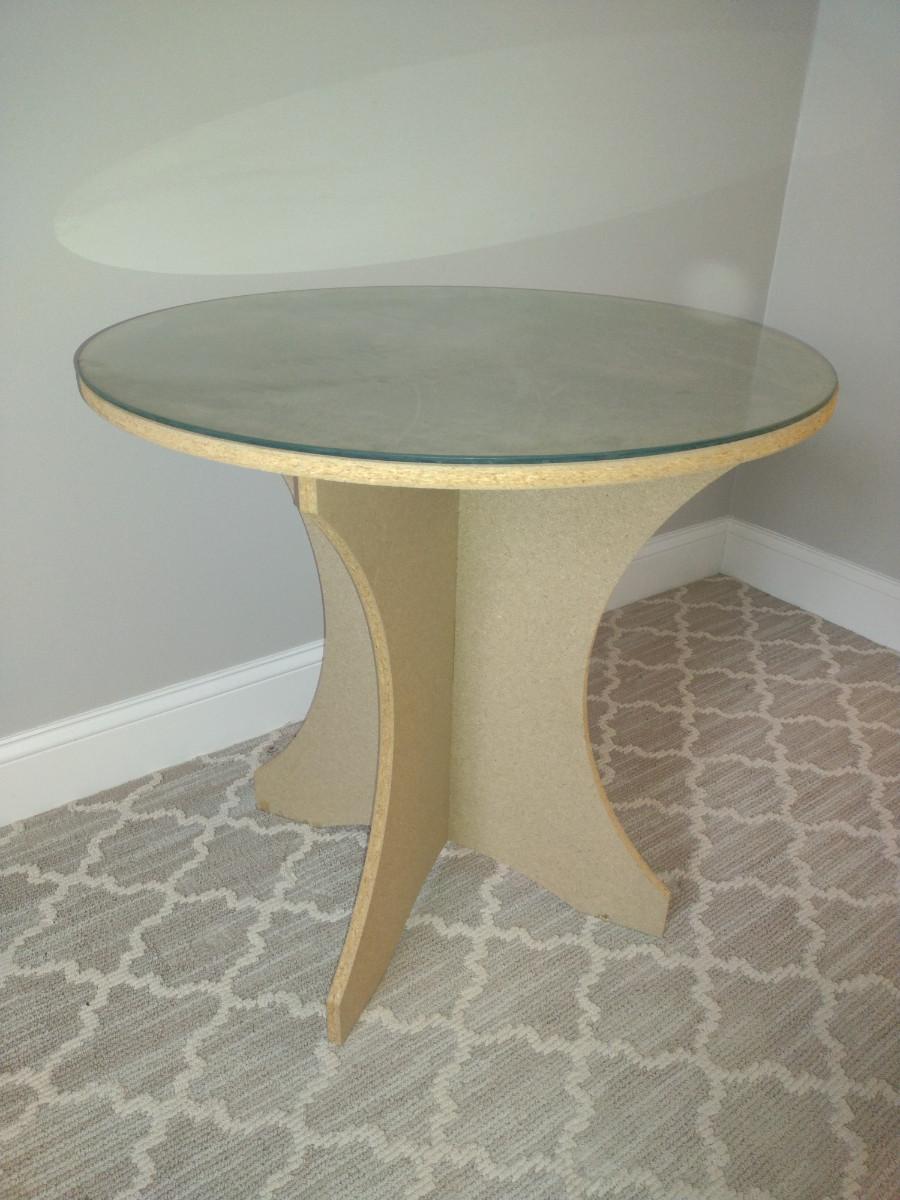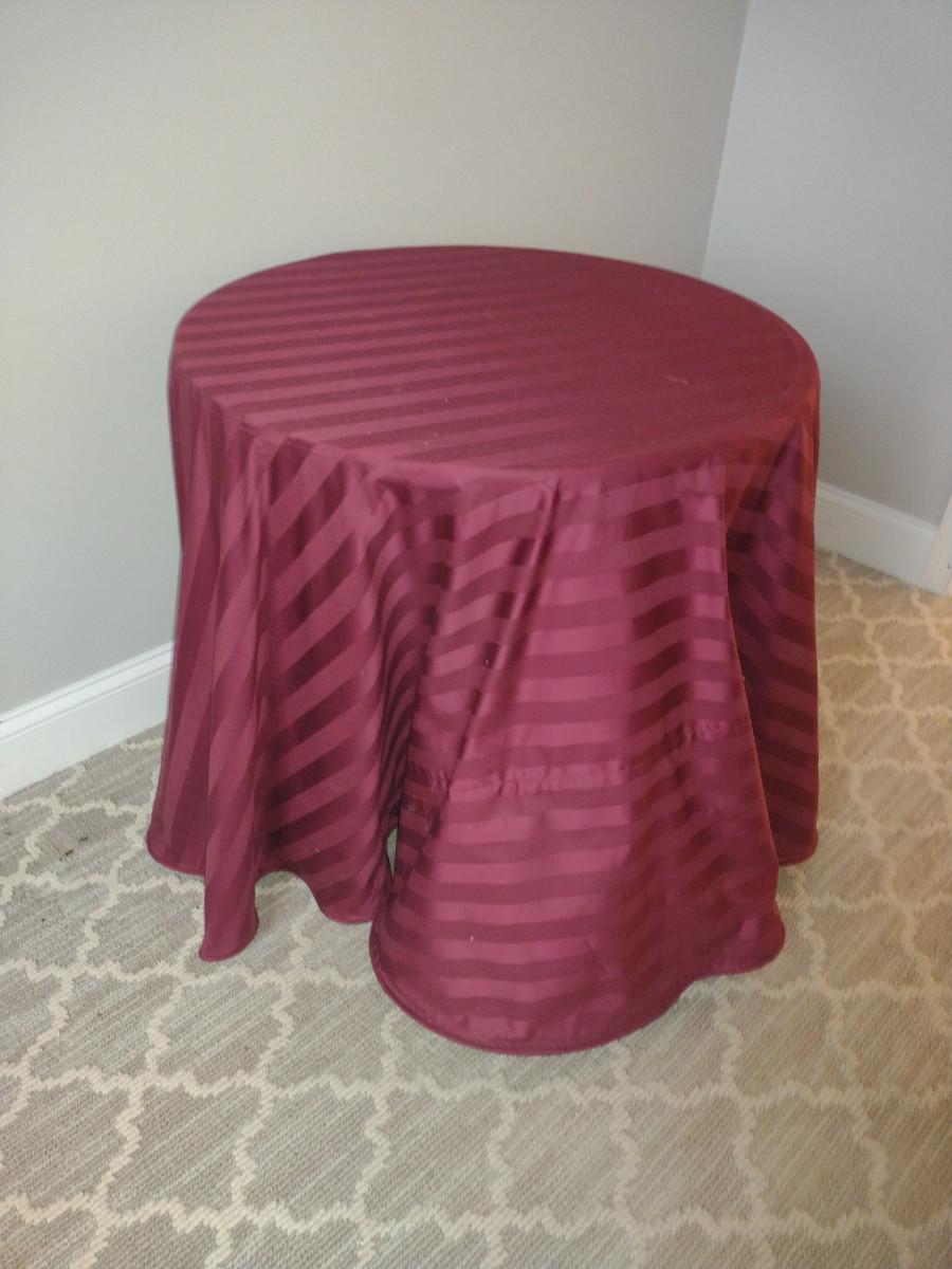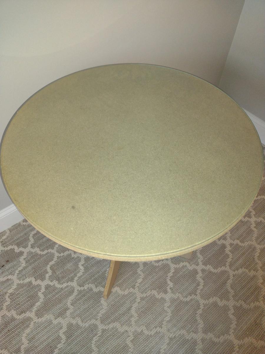 Pressed Wood Accent Table with Damask Cloth and Glass Top- Approx 28" in Diameter, 27 1/4" Tall