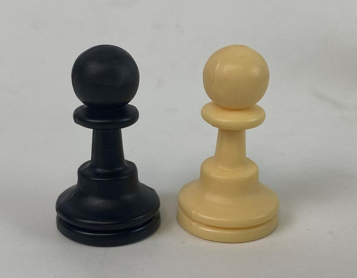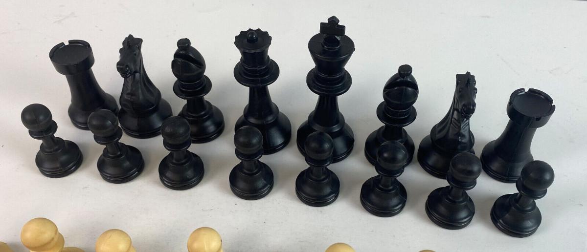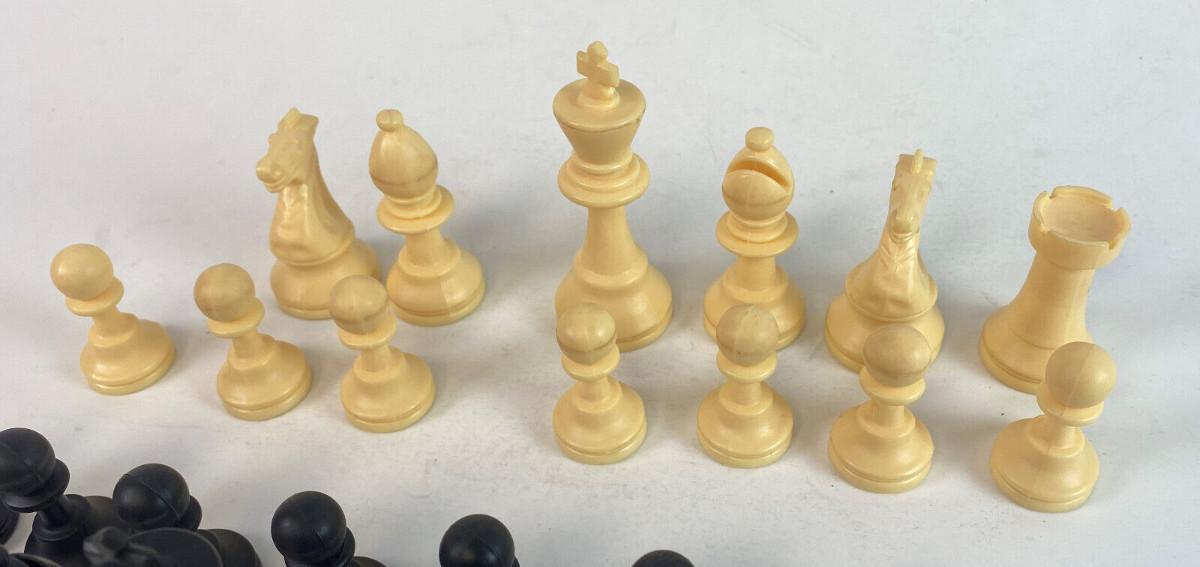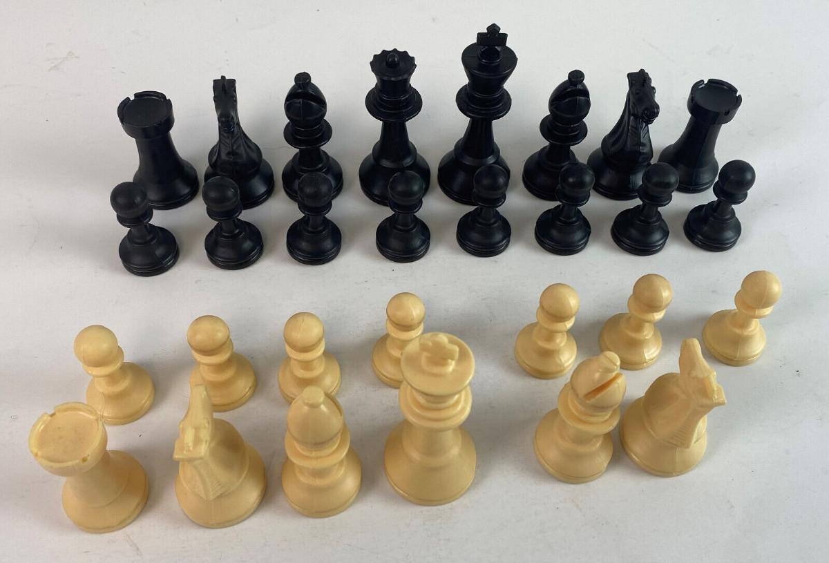 Partial set or replacements for a vintage Pressman solid Staunton chessman with felted bottoms..Tournament size with 3 5/8" King...Approved by the U.S. CHESS FEDERATION...Circa 1993...Includes (16) Black complete and (13) ivory missing Queen, Pawn and Rook...Light normal use...as shown..(29) pieces in all...No board or box.