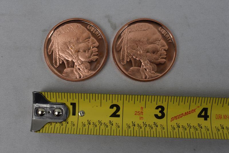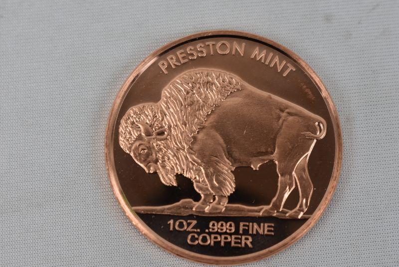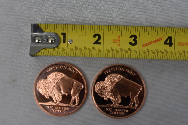 Presston Mint 2 Copper Coins: 1 oz each, 0.999 Fine Copper Bullion Buffalo Rounds - New