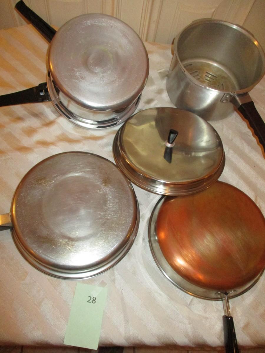 2 Pressure cookers. 2 Frying Pans. Lids