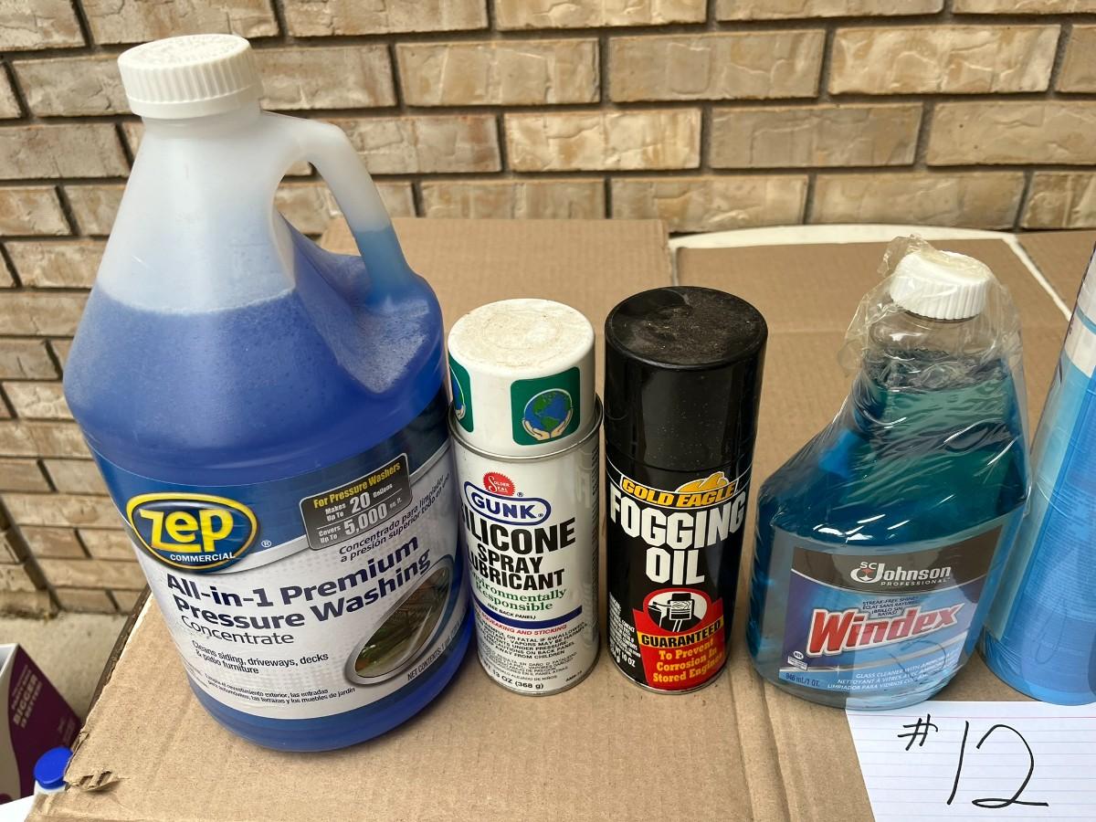 Pressure Washing Concentrate, Silicone Spray, Fogging Oil, 4 Cans Lysol, Windex