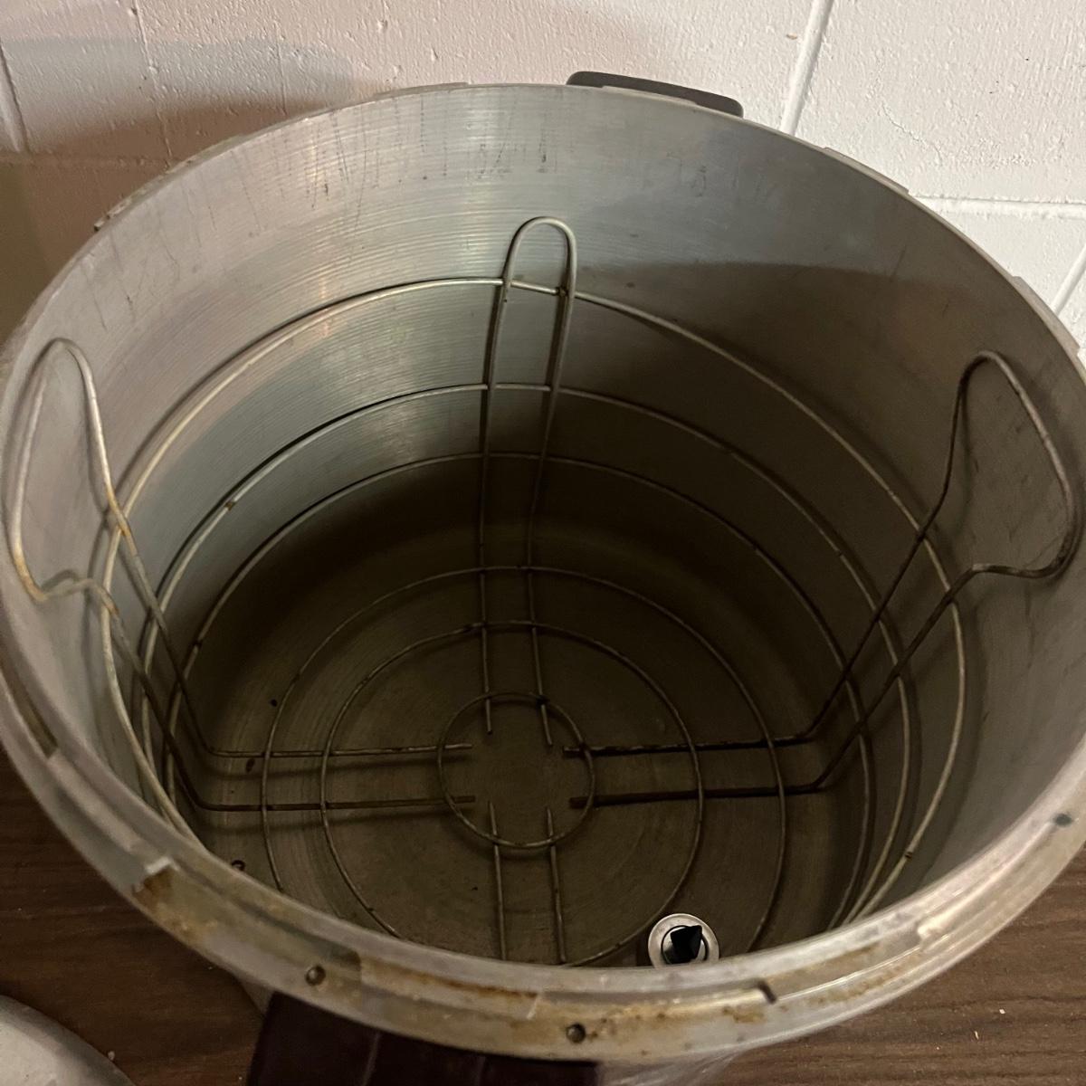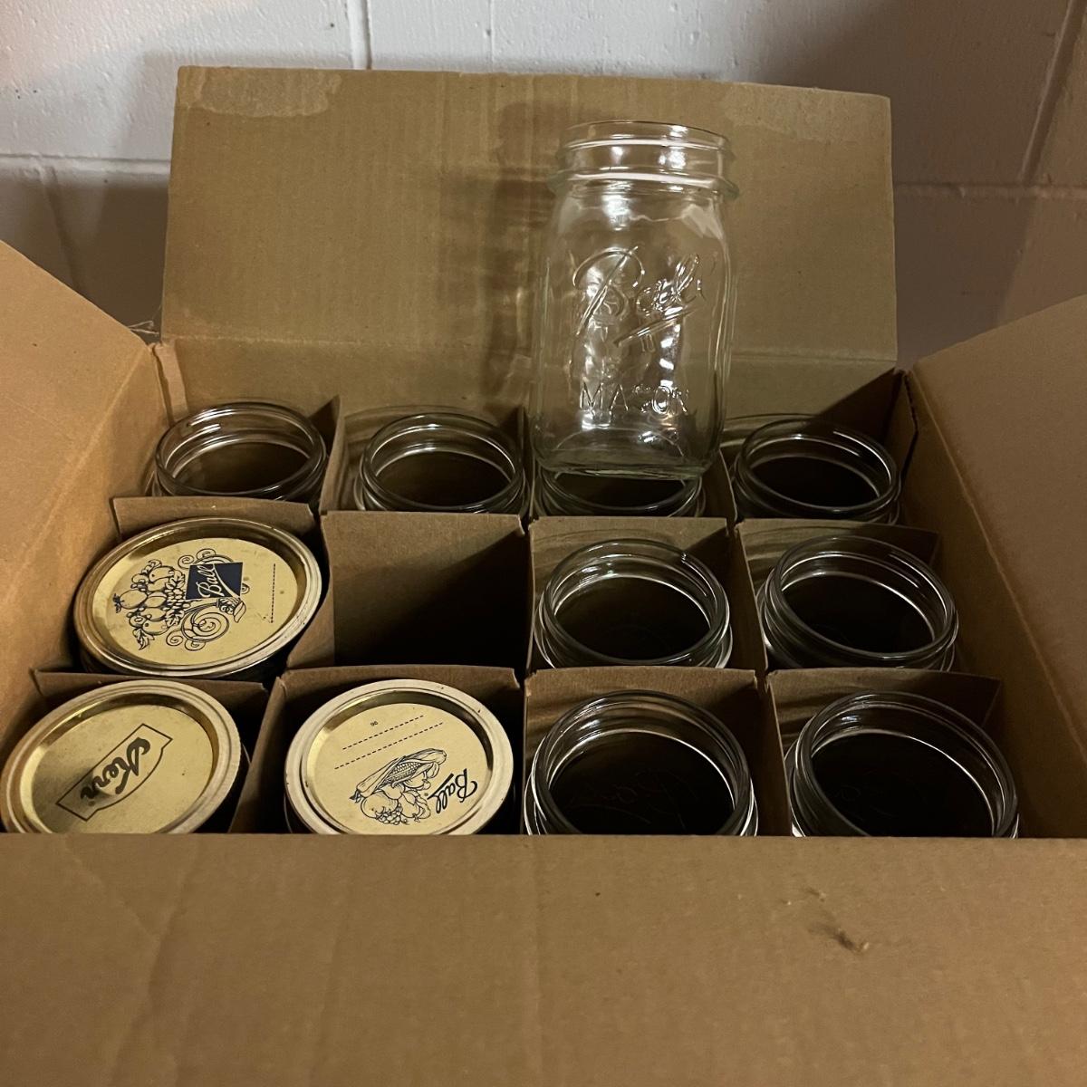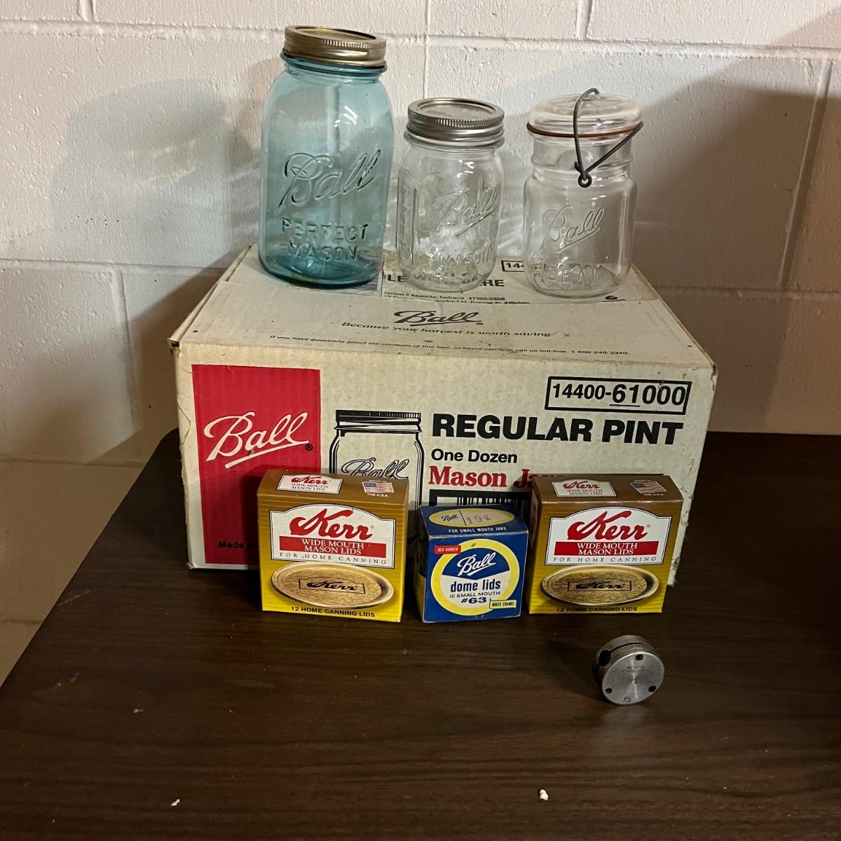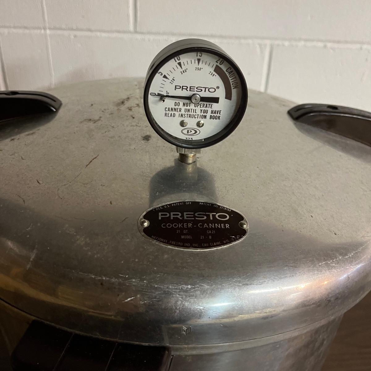 Lot includes a Presto 21 qt cooker/canner with twelve ball jars, book on canning and lids.