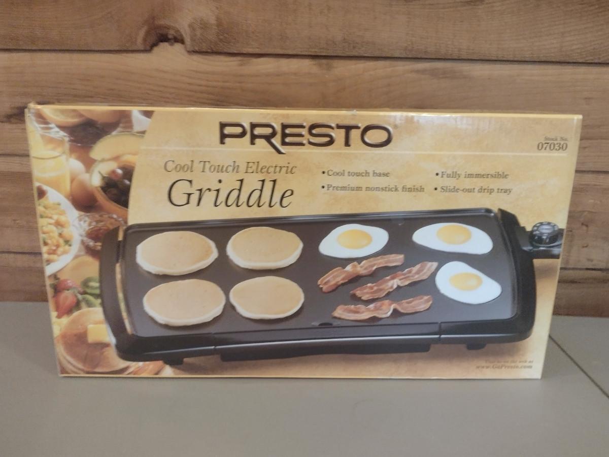 Presto Electric Griddle- Approx 10 1/2" x 20". Item is in sealed box and is untested.