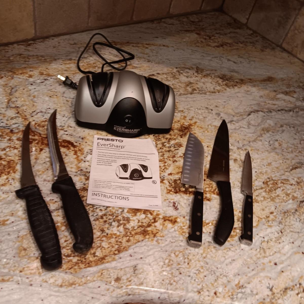PRESTO ELECTRIC KNIFE SHARPENER WITH A VARIETY OF CUTLERY