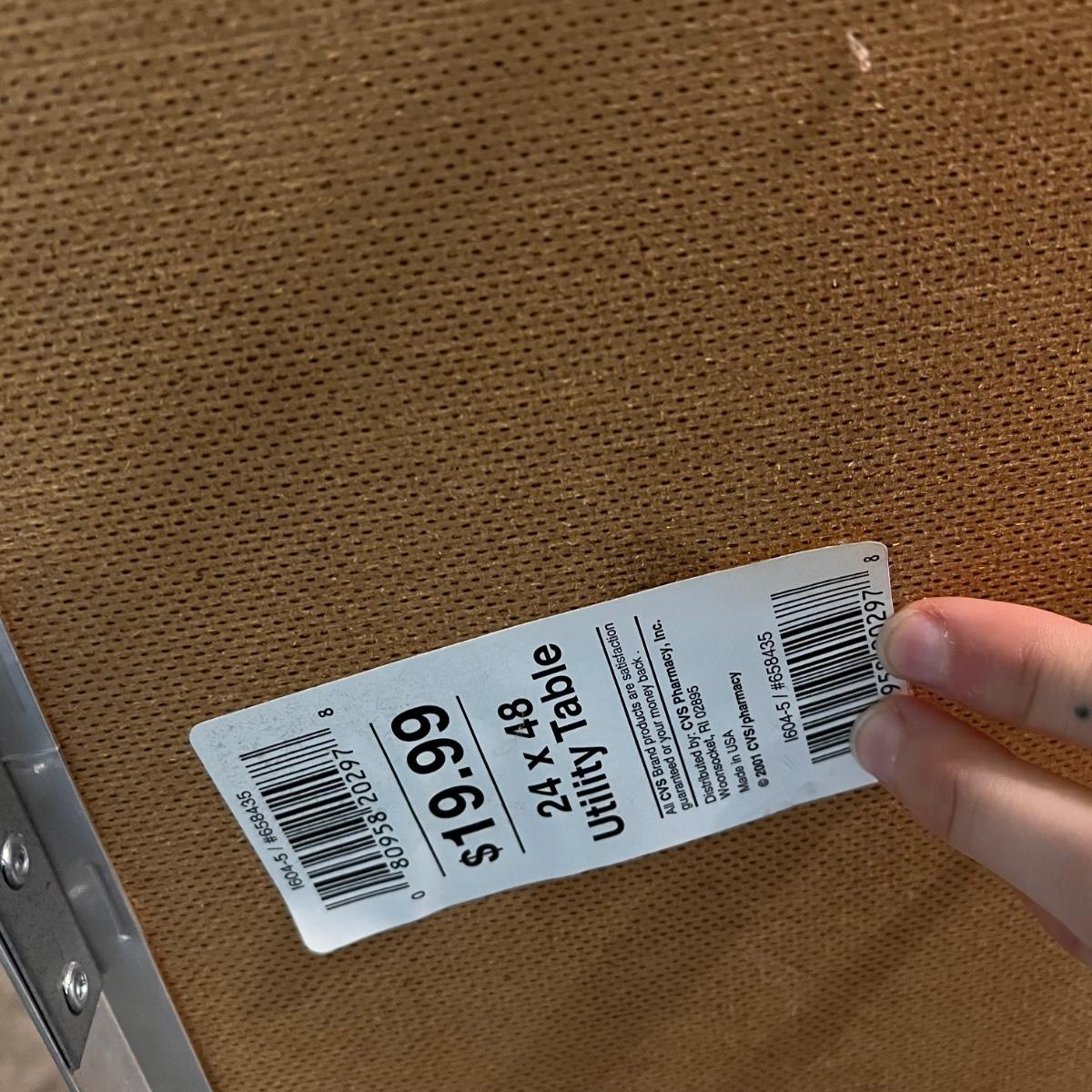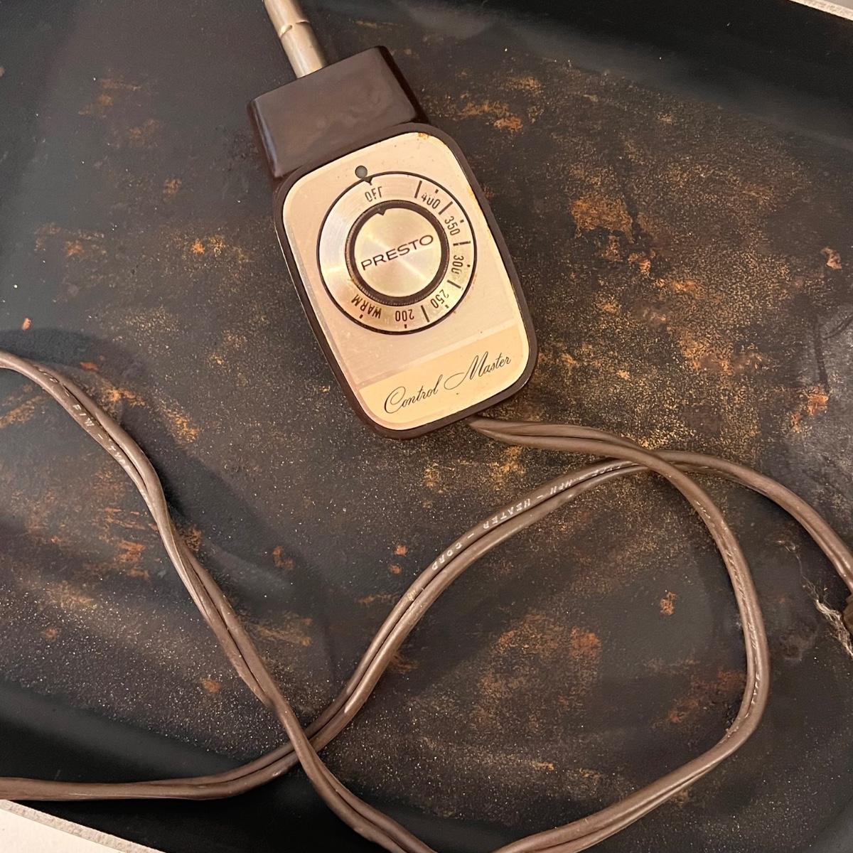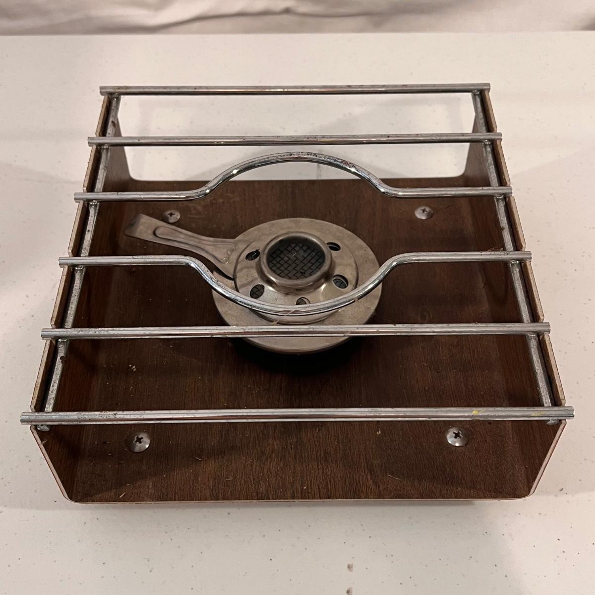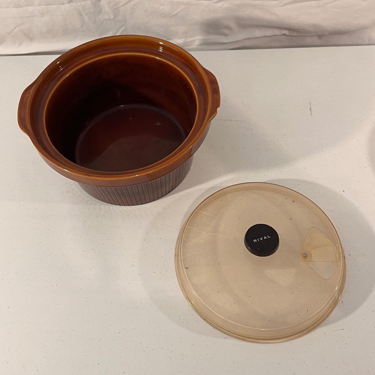 Lot includes one collapsible table, one Presto electric griddle with lid, two T-FAL yellow bakeware, one crock pot ceramic insert, and what appears to be one small camp stove. The table measures 24” x 48”H. The Presto powered on when plugged in. Local pickup only.