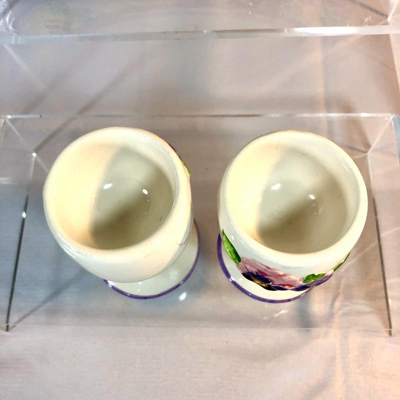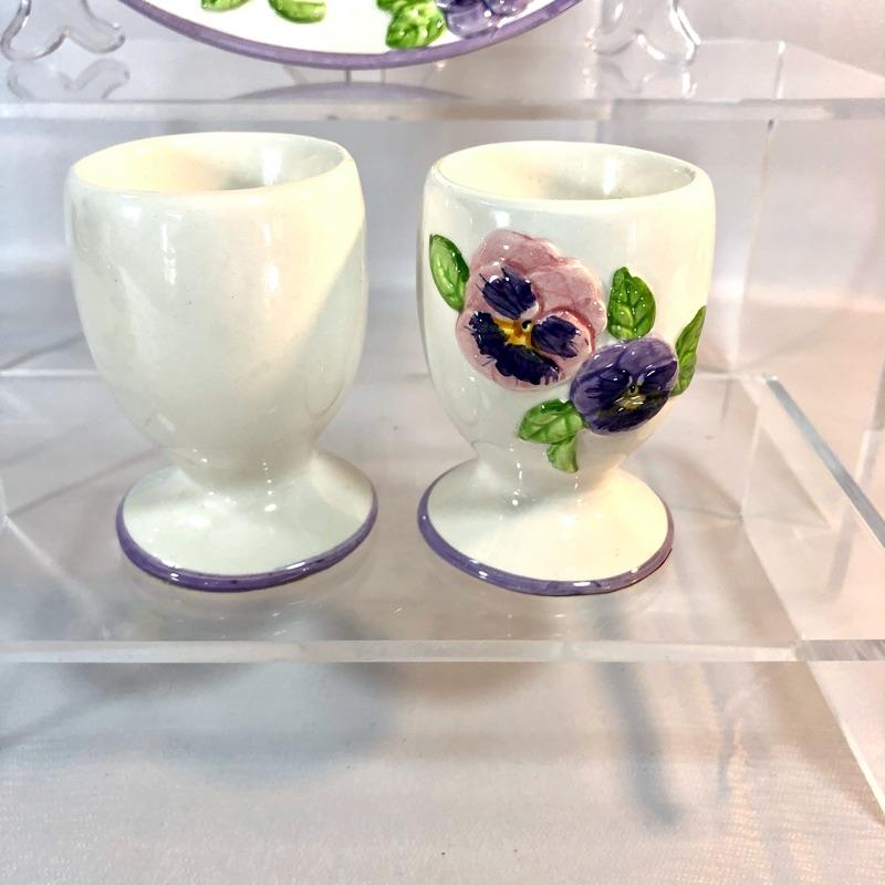 9" plate has Integrated hanging loop, two pansy tealights, and two egg cups.