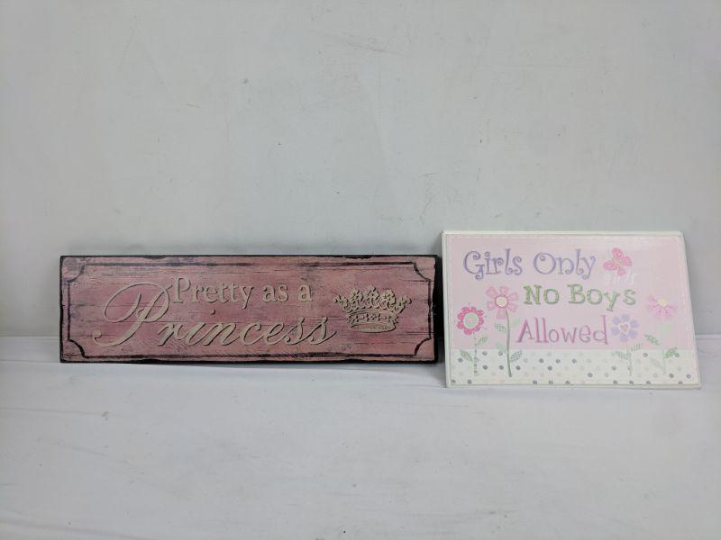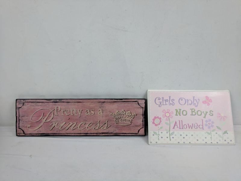 "Pretty As A Princess Wood" & "Girls Only, No Boys Allowed" Wooden Wall Decor