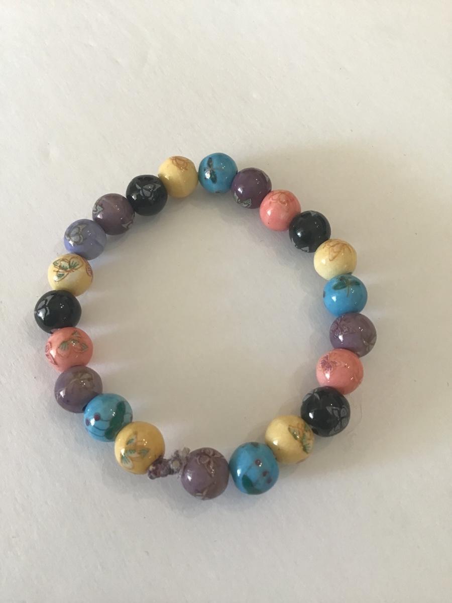 Pretty beaded stretch bracelet with butterfly & floral designs