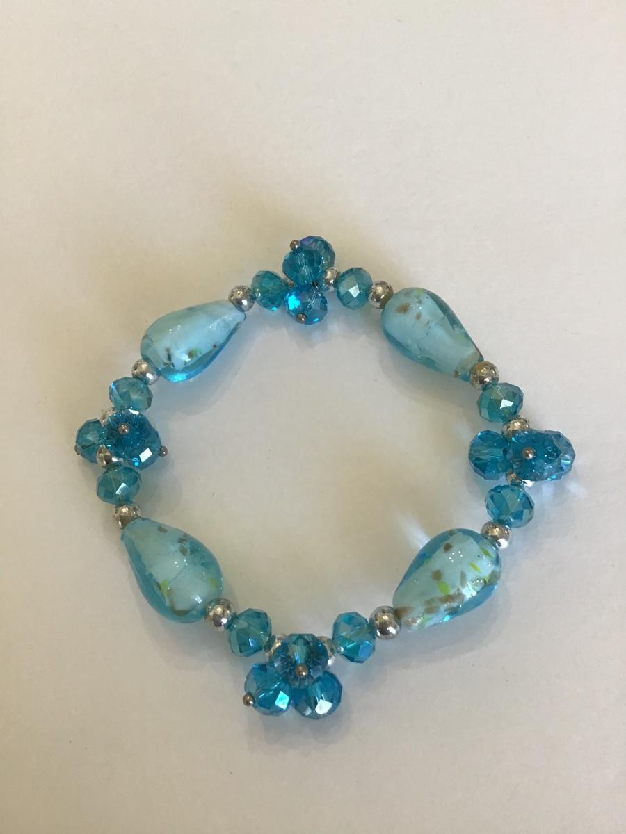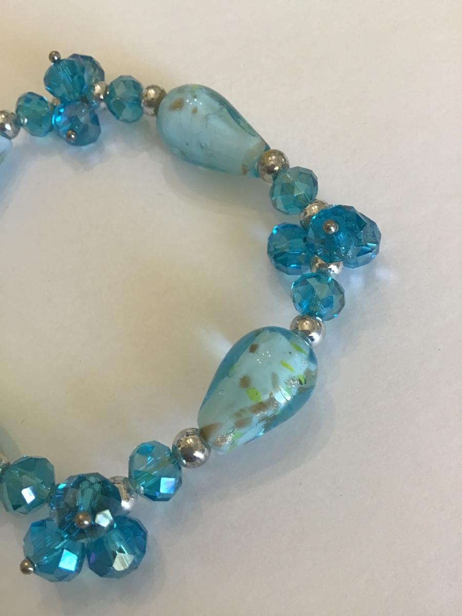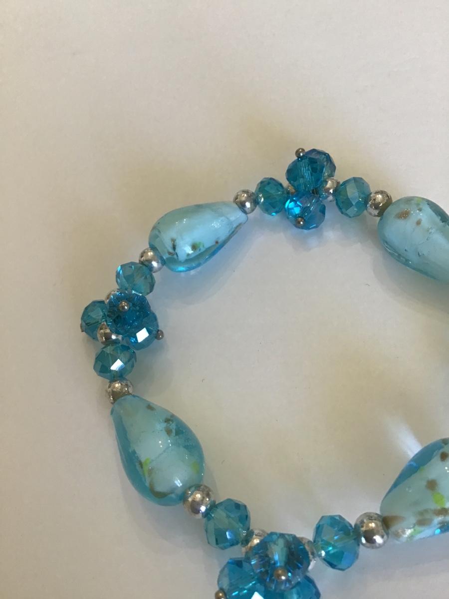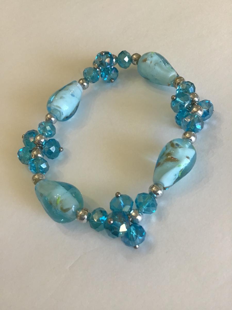 Pretty blue Rhinestone and art glass stretch bracelet