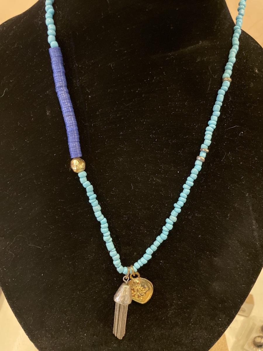 Genuine stone bracelet, chicos beaded necklace and chandelier earrings