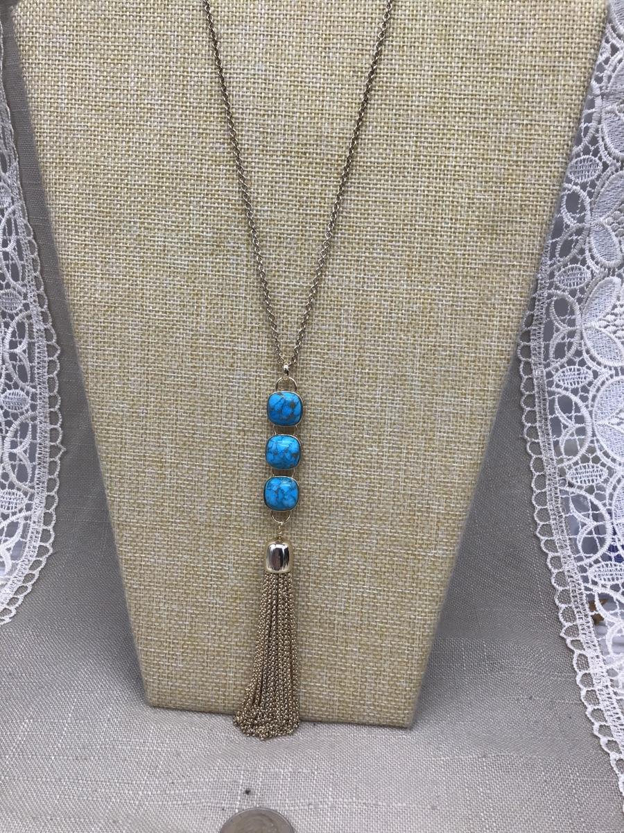Pretty Fashion Necklace With faux Turquoise Stones