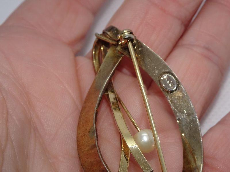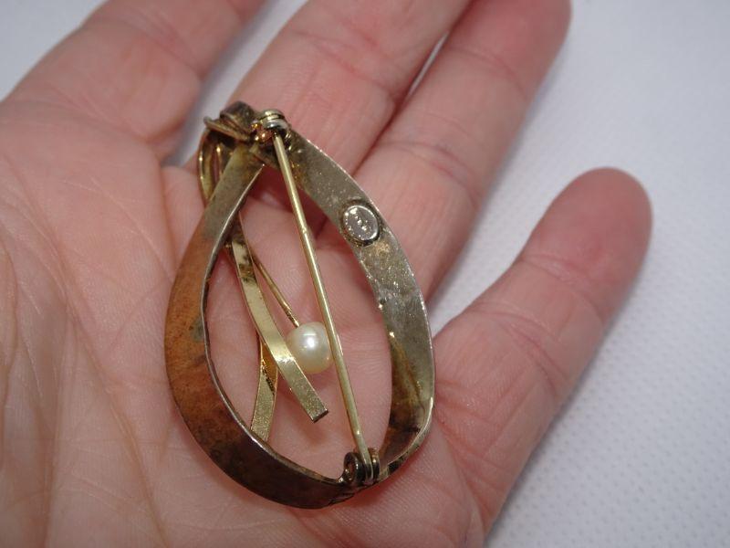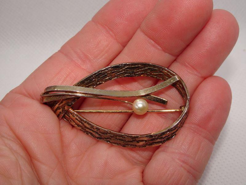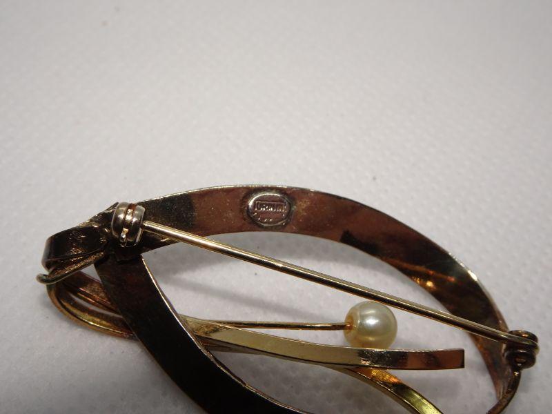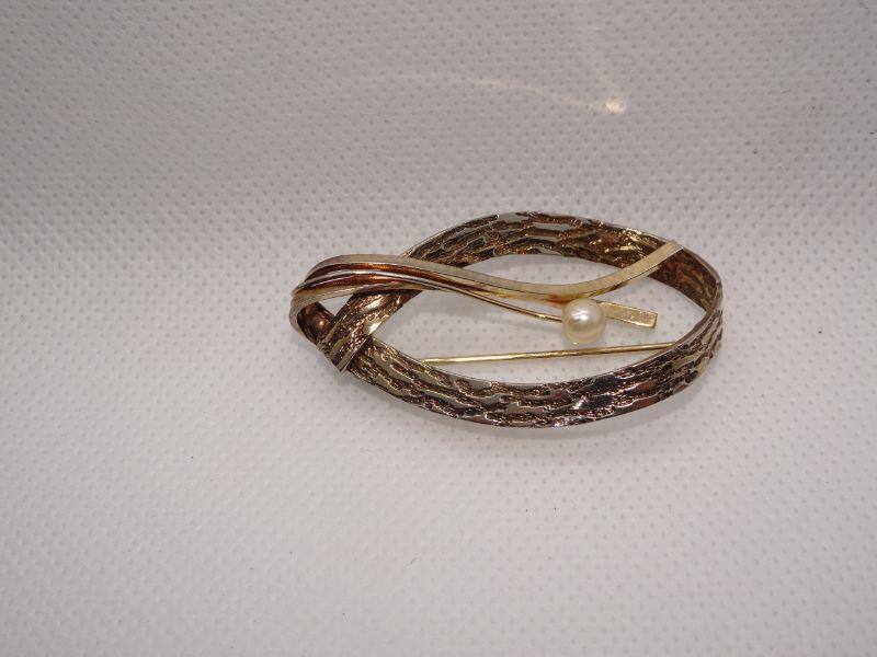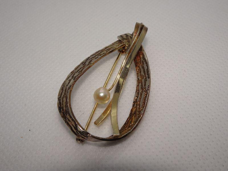 Pretty Gold Tone Pearl Pin Brooch, Simple but Elegant