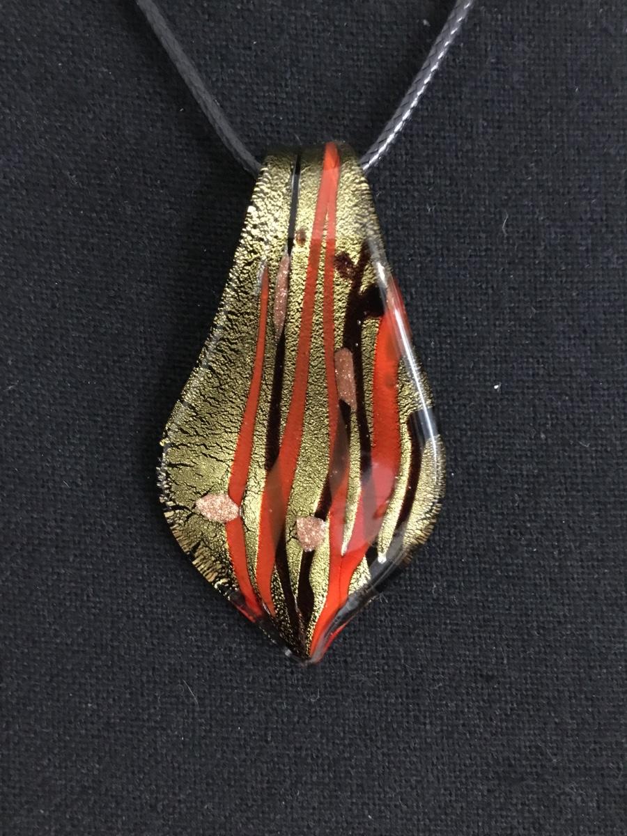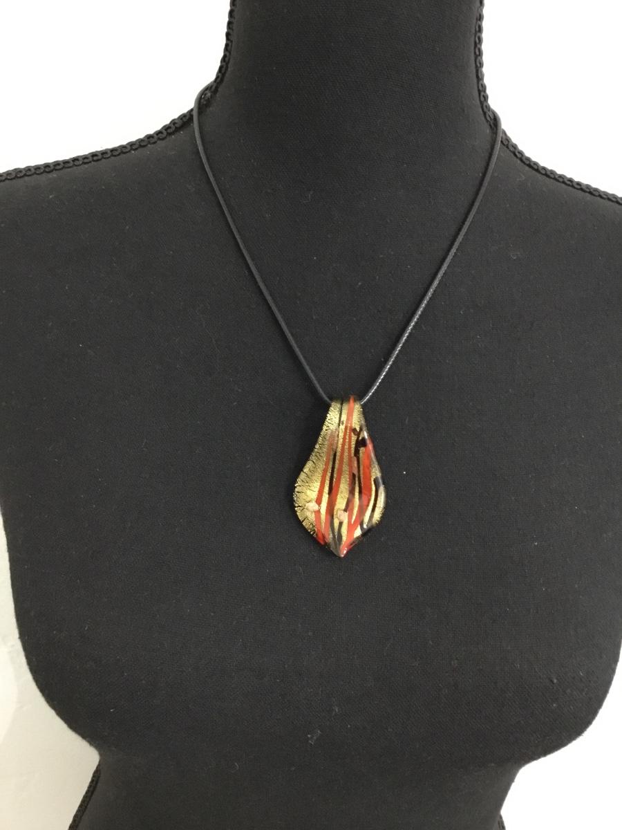 Pretty hand blown glass pendant on black corded necklace