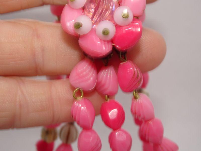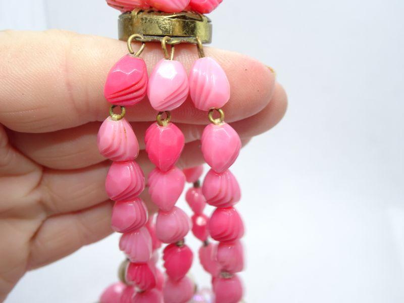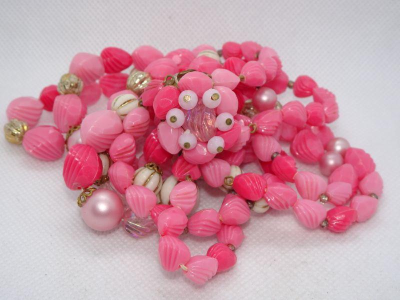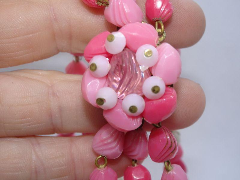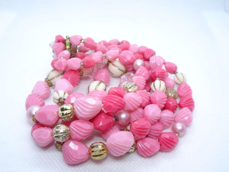 Pretty in Pink 3 Strand Mid Century Mod Plastic Beaded Necklace