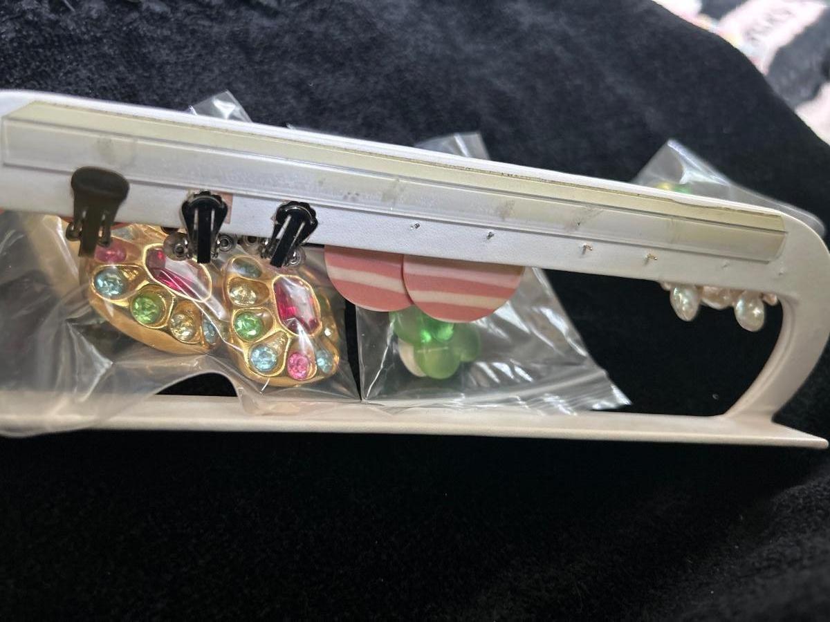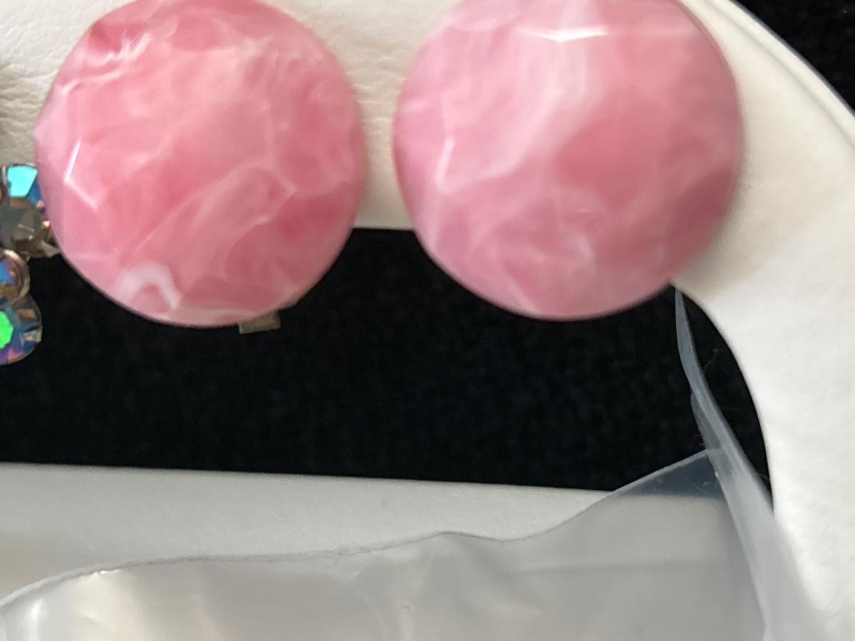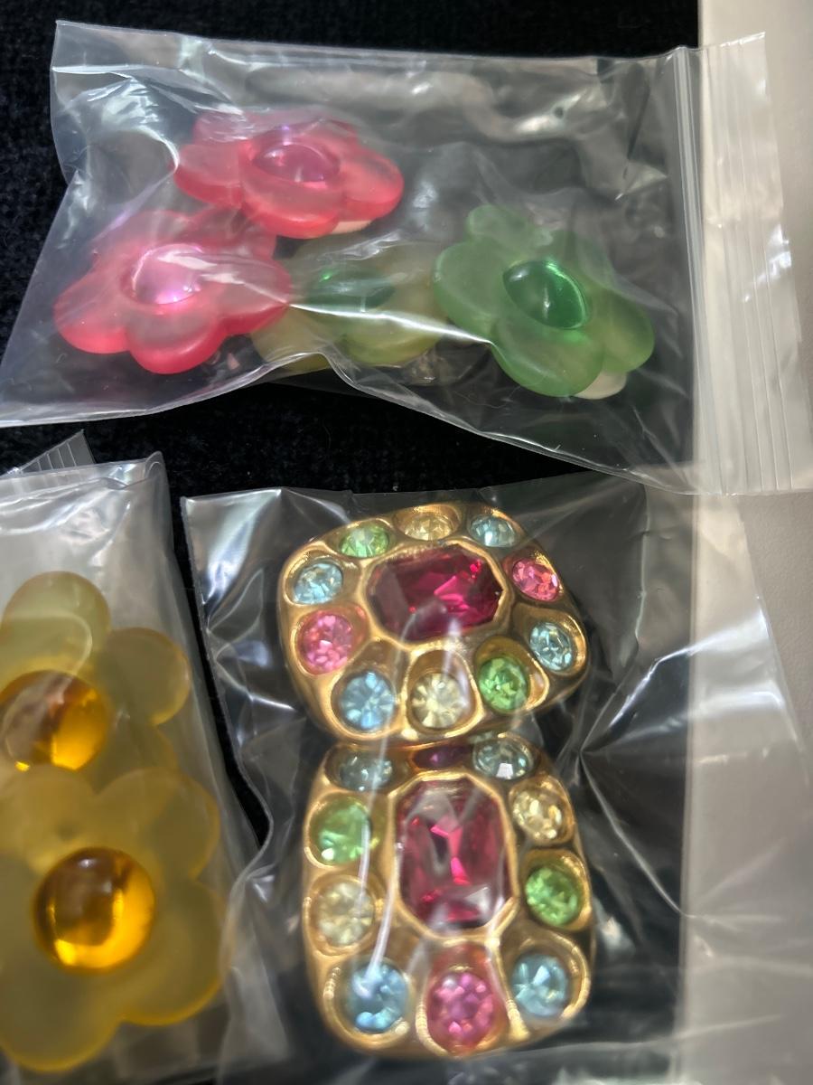 Starting on the left: first 4 are pierced & the last 6 are clip. The pearl like flowers only have 1 back.