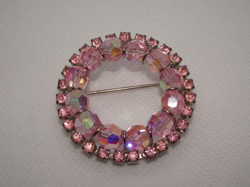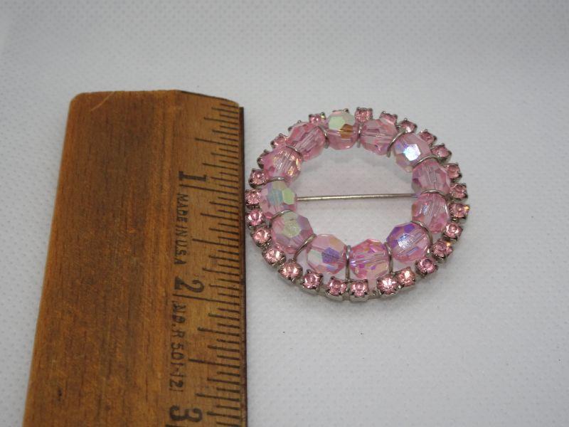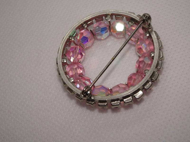 Pretty in Pink Rhinestone & Crystal Oval Brooch, Mid Century Jewelry
