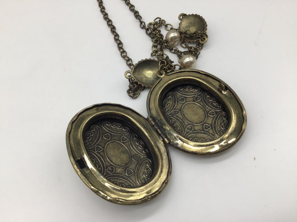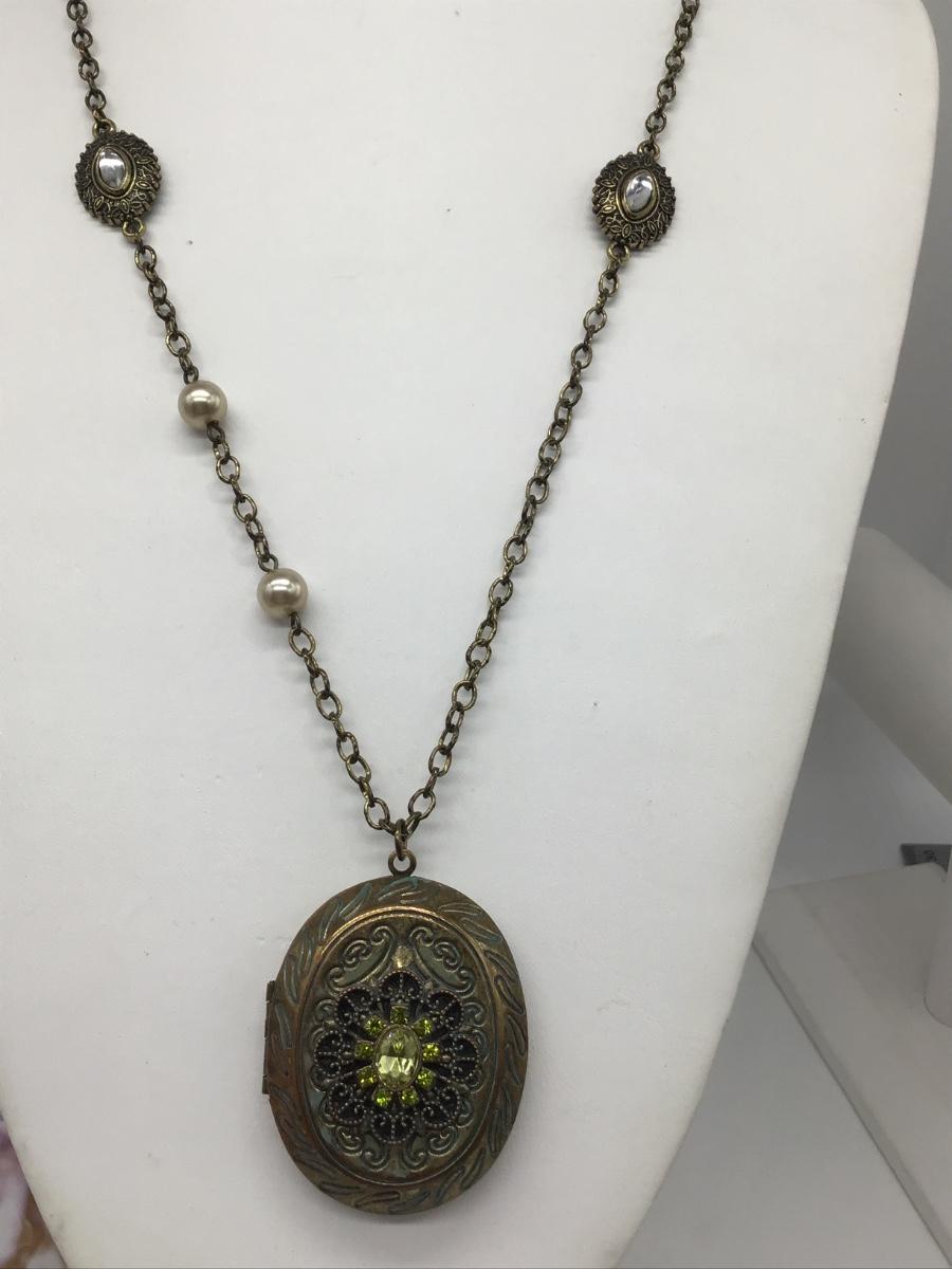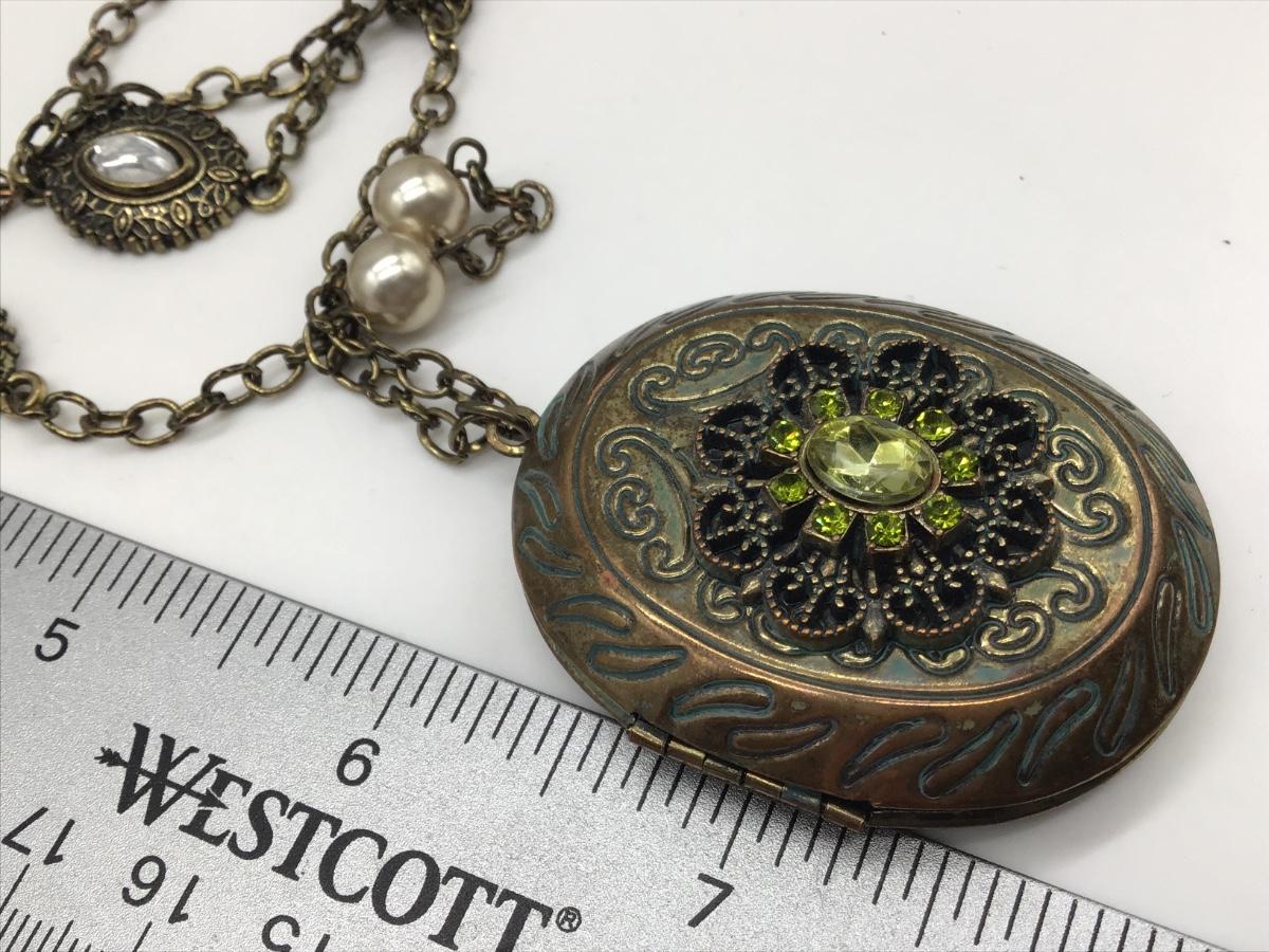 Pretty Large Locket With Green Faux Stones