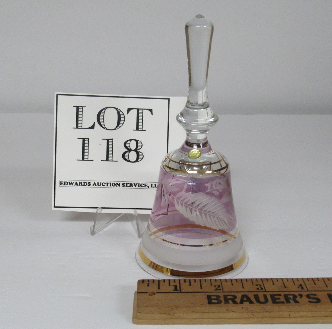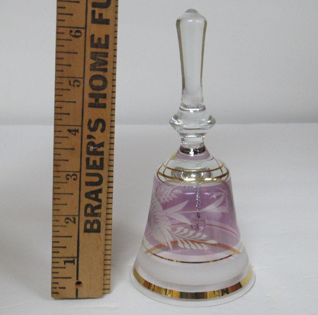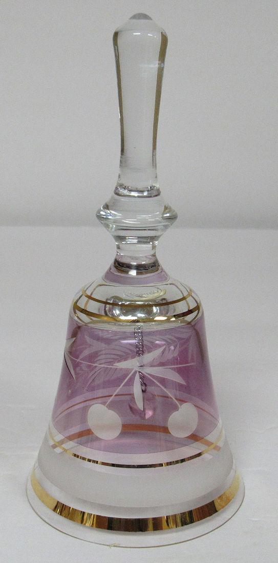 Pretty Lilac and Frosted Cut to Clear Glass Bell, Made in Hungary