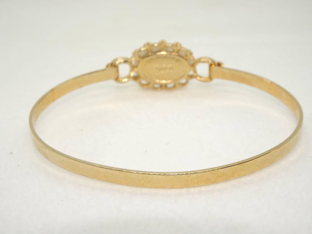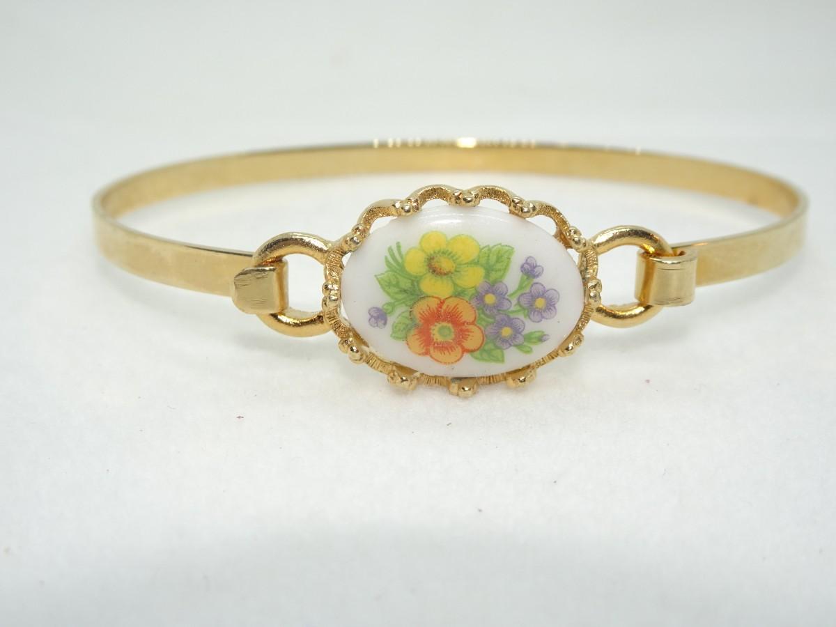 Pretty Little Gold Tone AVON porcelain Flower Latch Cuff Bracelet