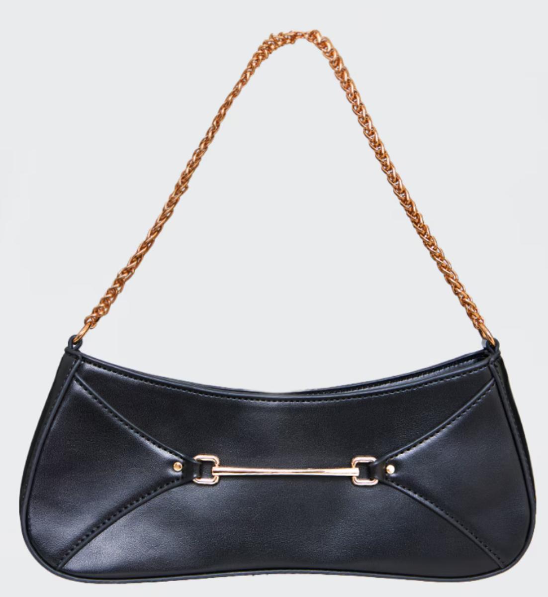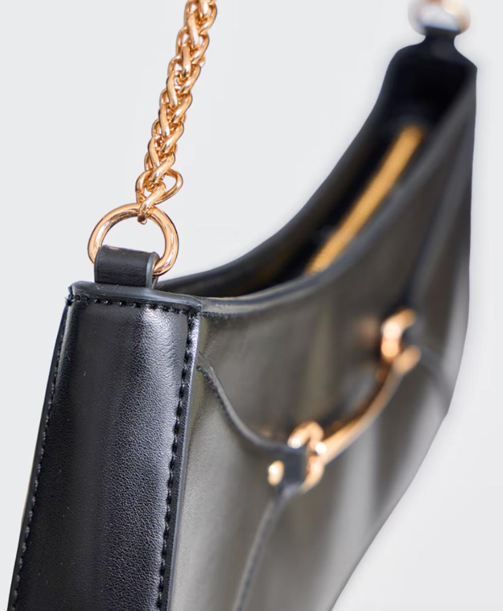 Pretty Little Things Black PU Buckle Chain Strap Shoulder Bag