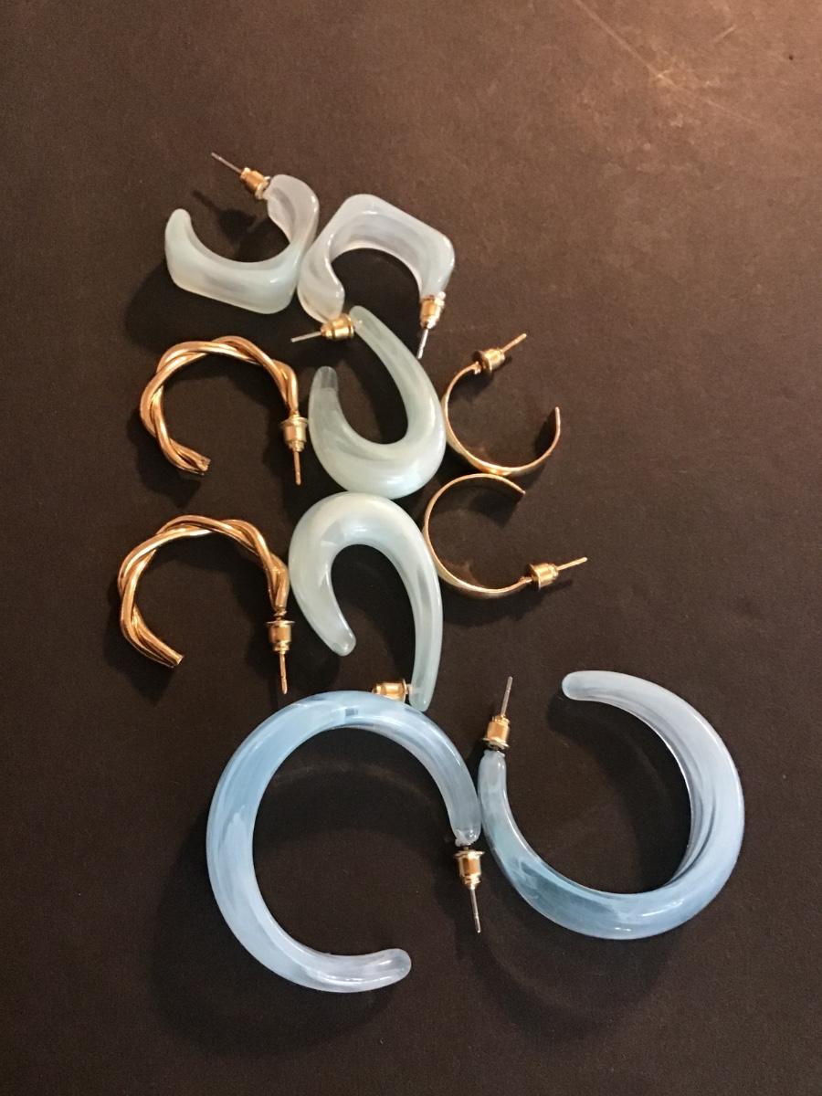 Pretty lot of gold tone and blue acrylic fashion earrings
