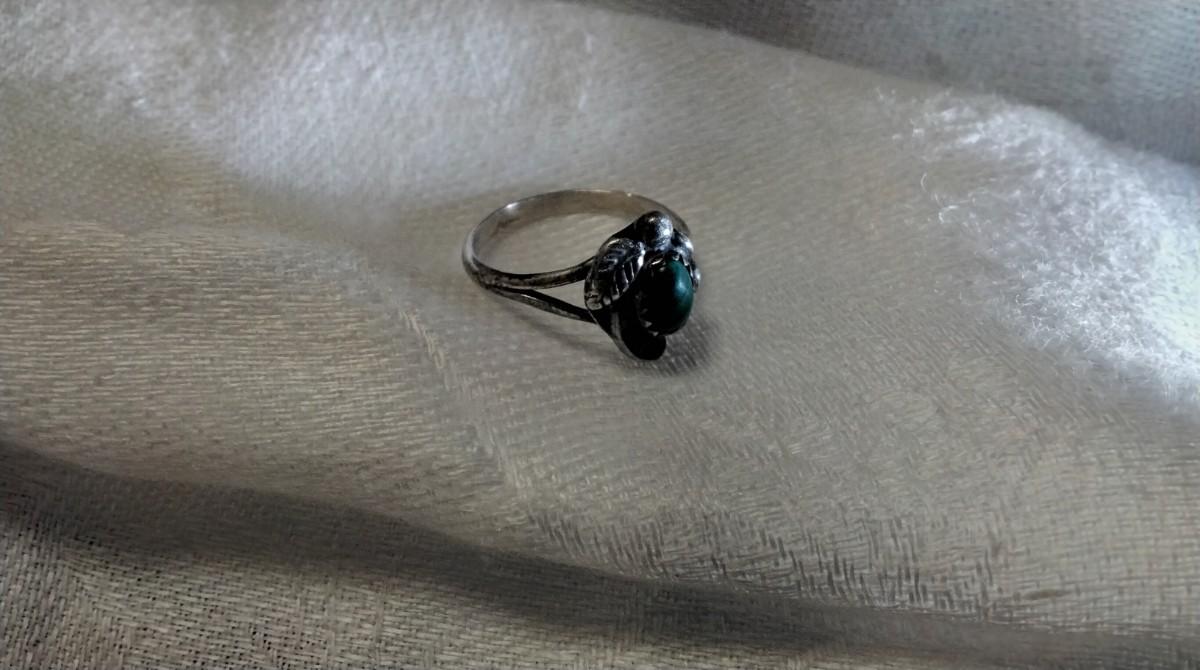 Pretty Malachite Ivy and Leaves Ring Size 5.5