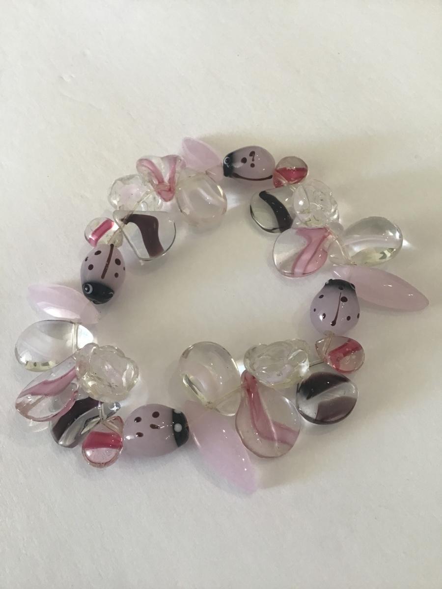 Pretty pink art glass stretch bracelet