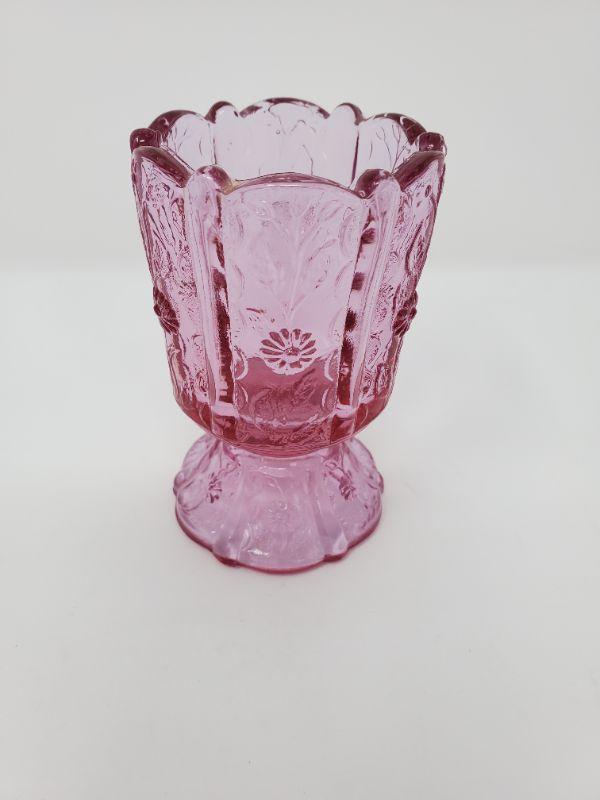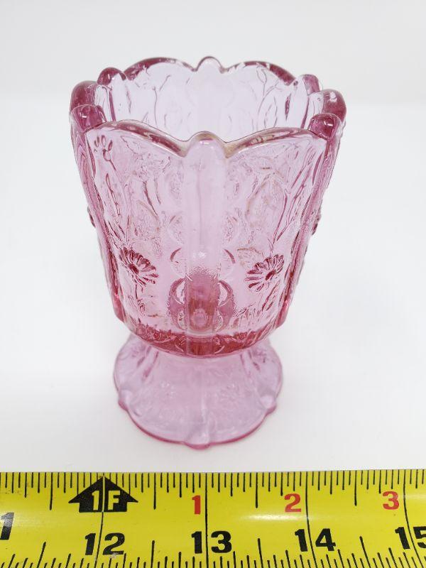 PRETTY PINK FOOTED GLASS TOOTHPICK HOLDER