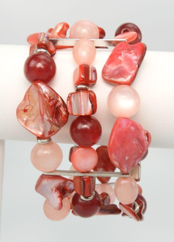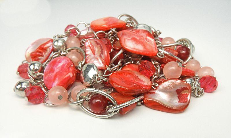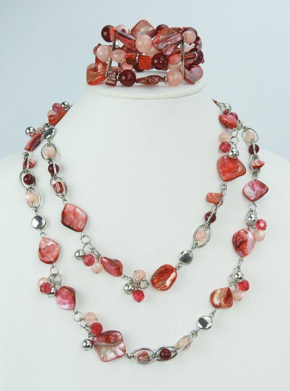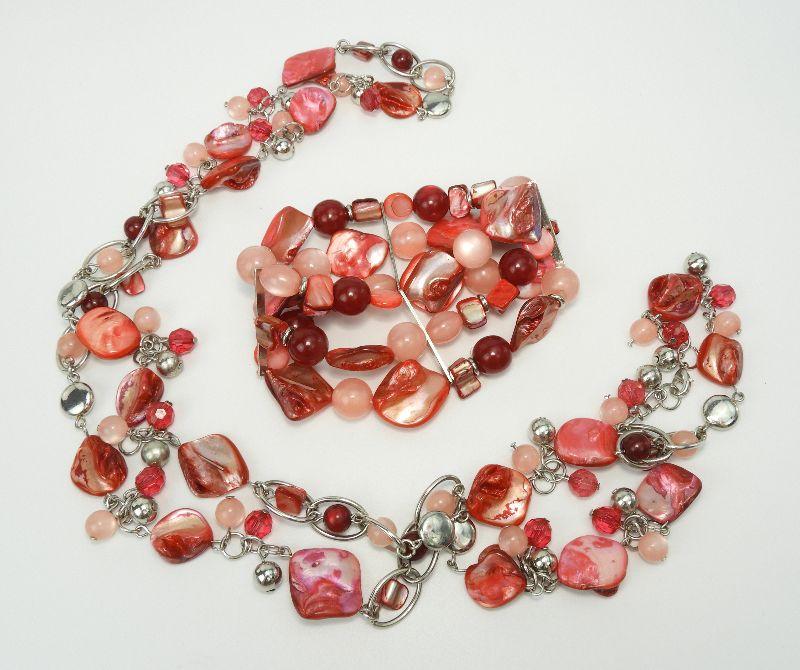 Pretty Pink & Red Bead Necklace & Bracelet Set
