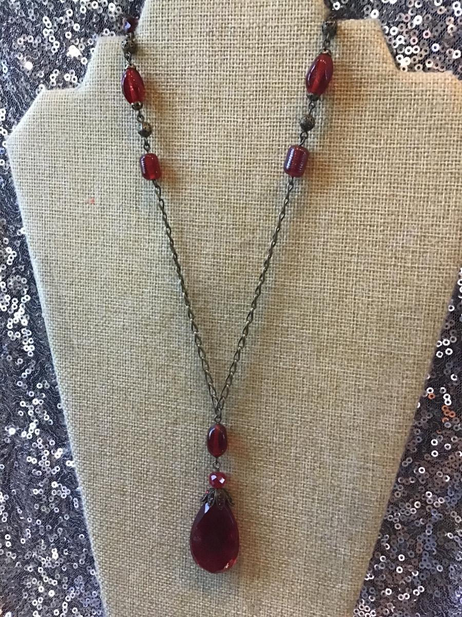 Pretty Red Glass Fashion Necklace