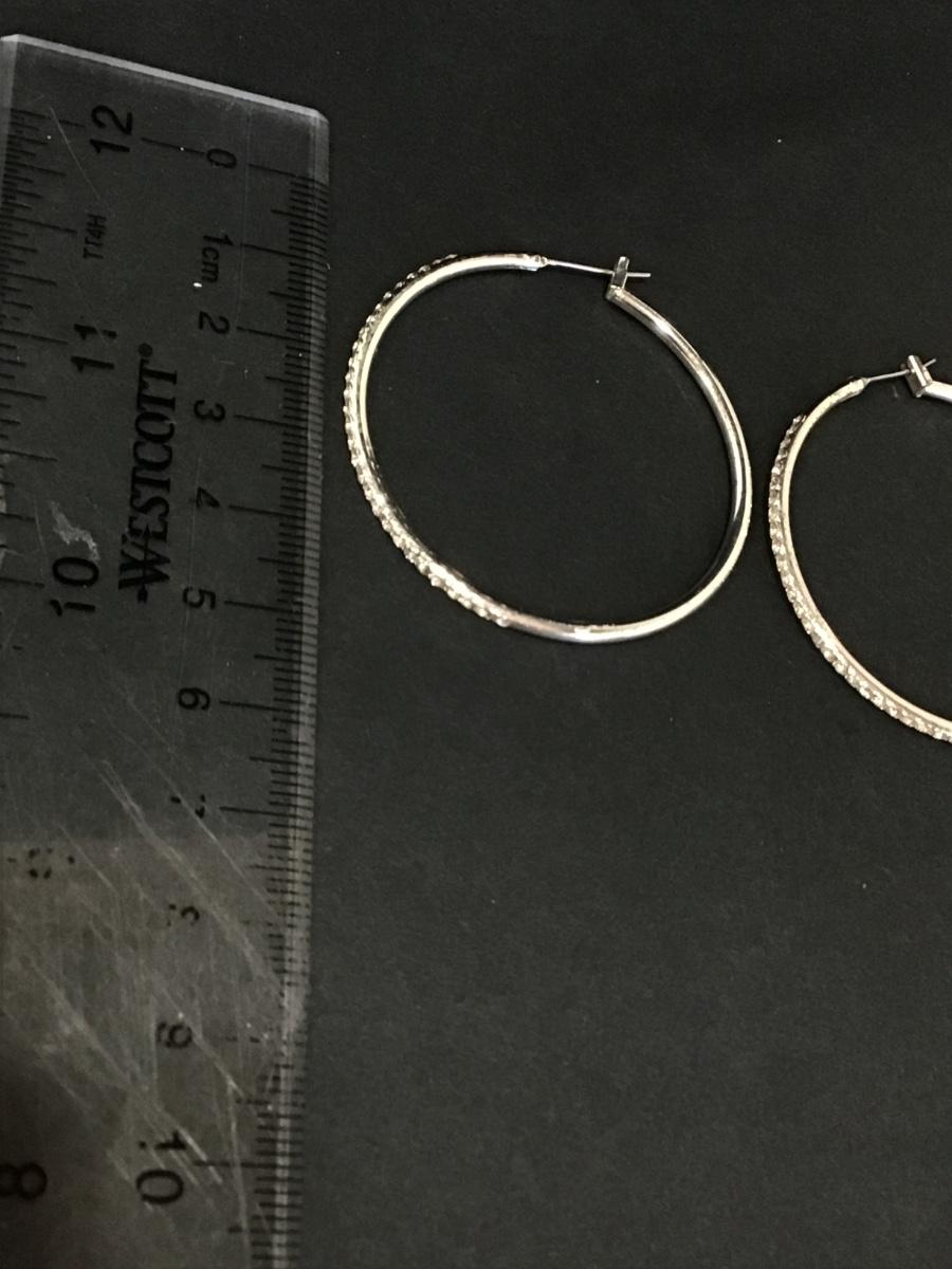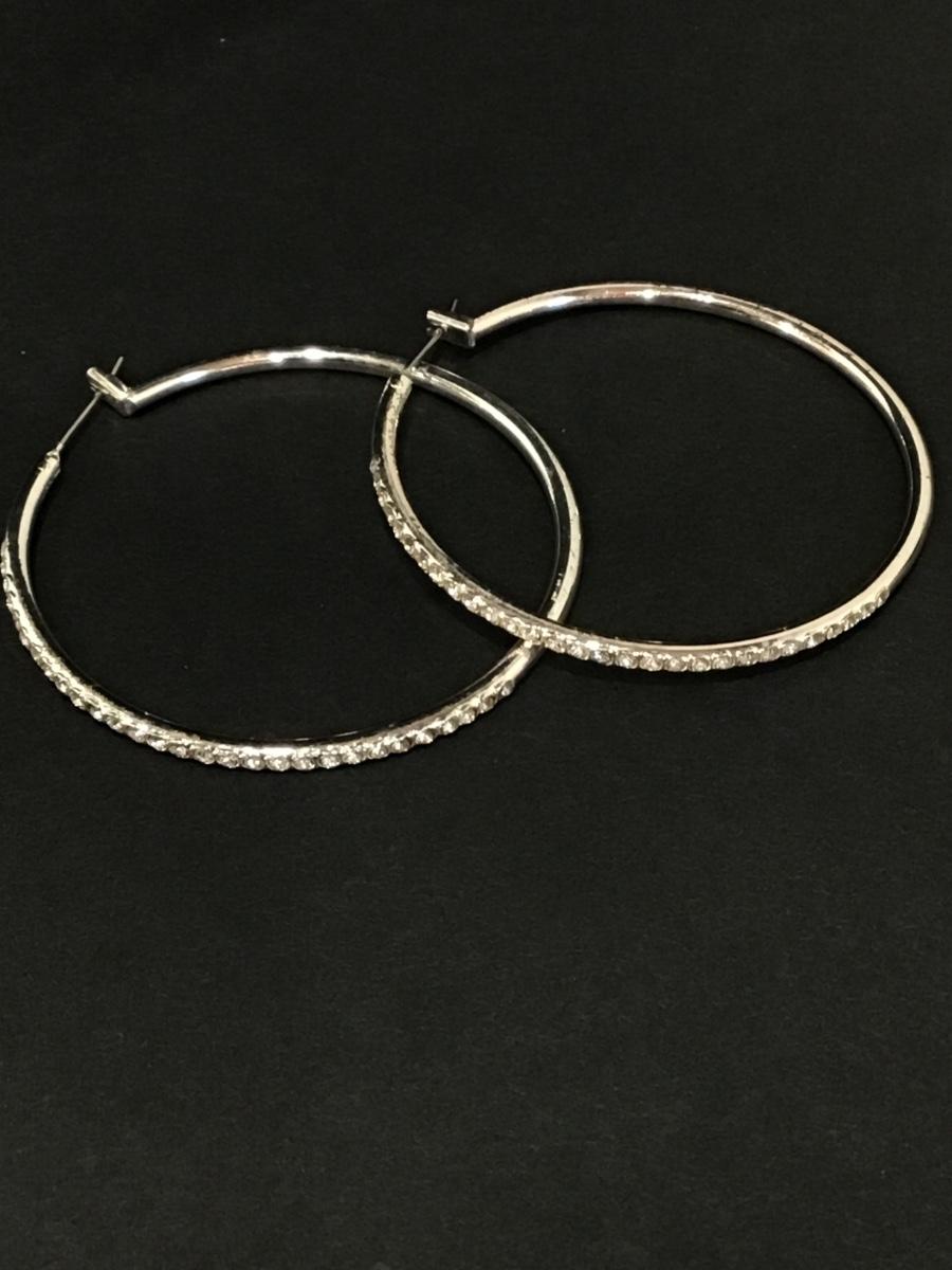 Pretty rhinestone, silver toned hoop earrings in excellent condition