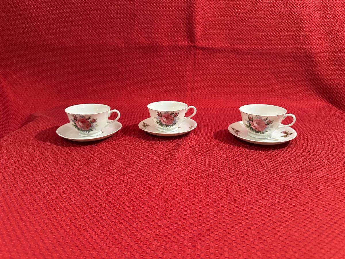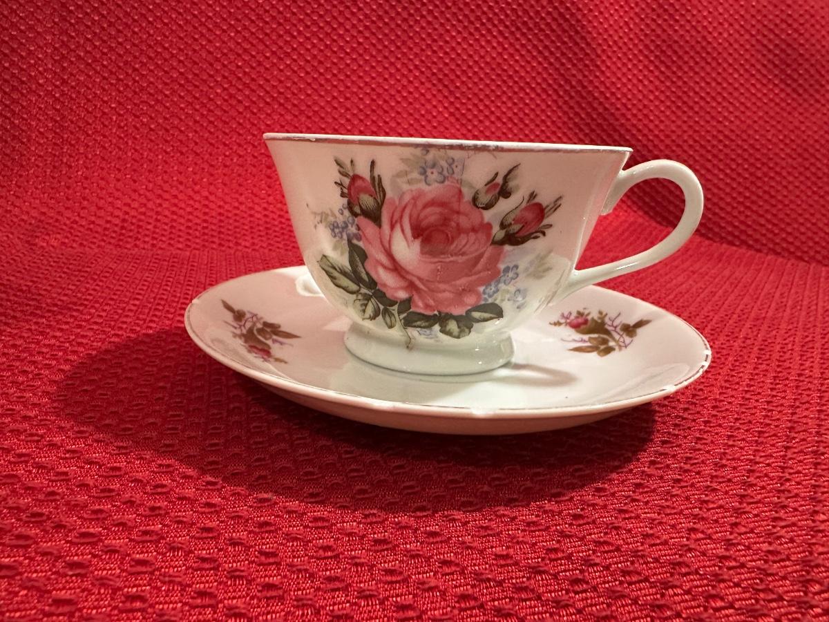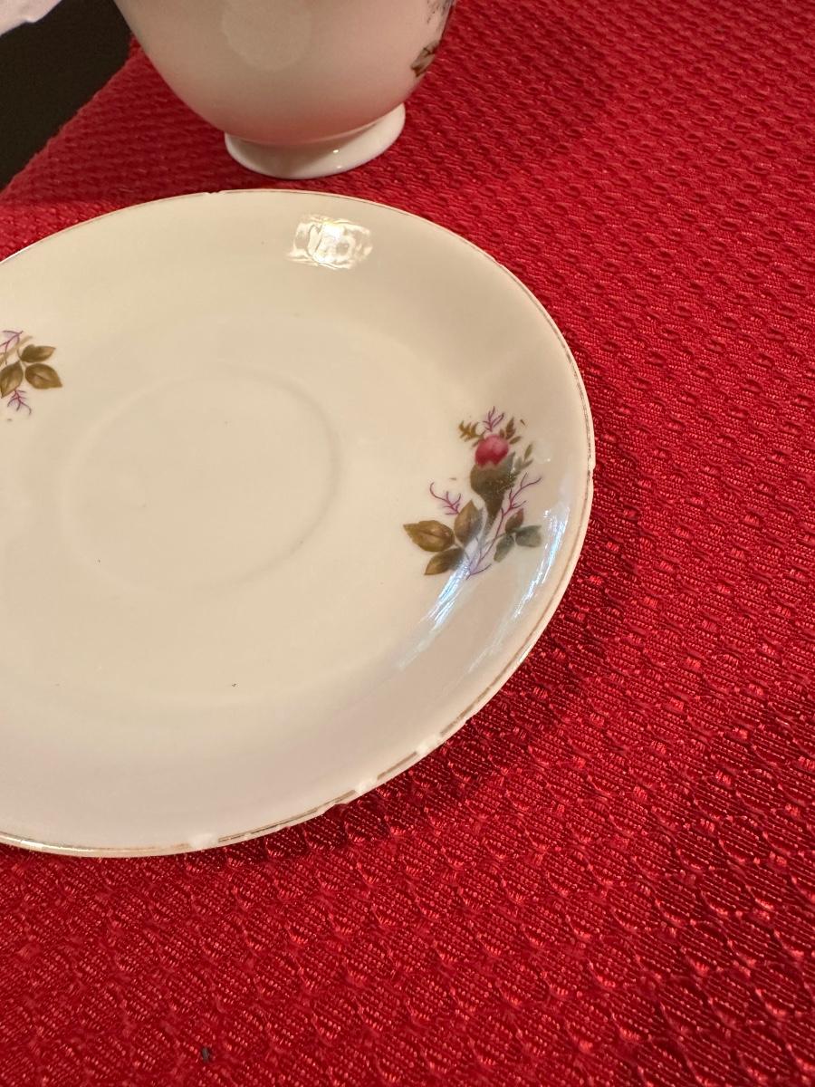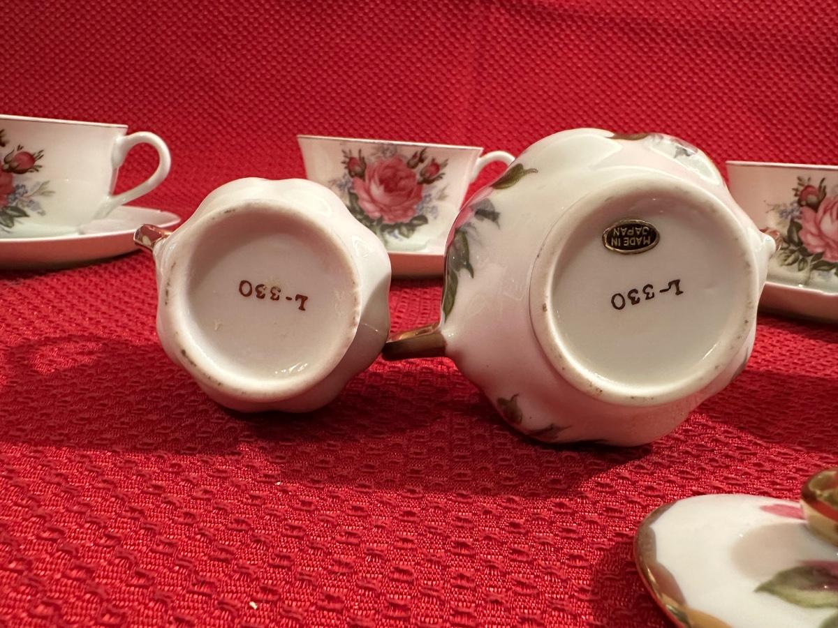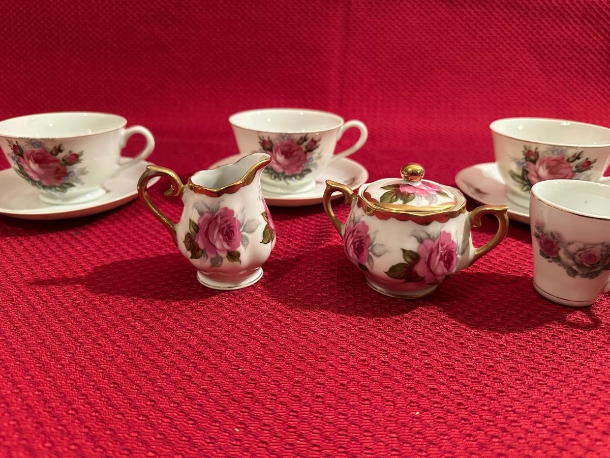 PRETTY ROSE TEA CUPS CREAMER AND SUGAR