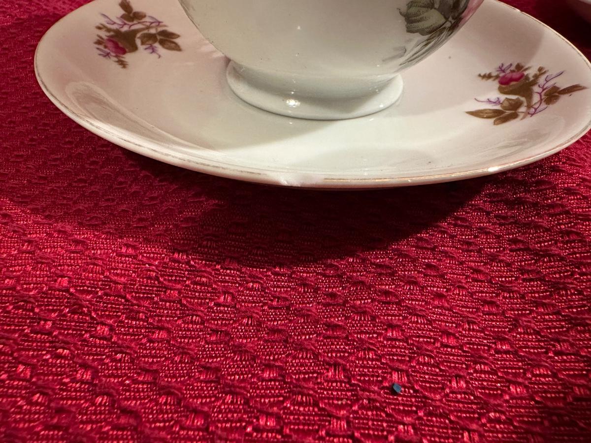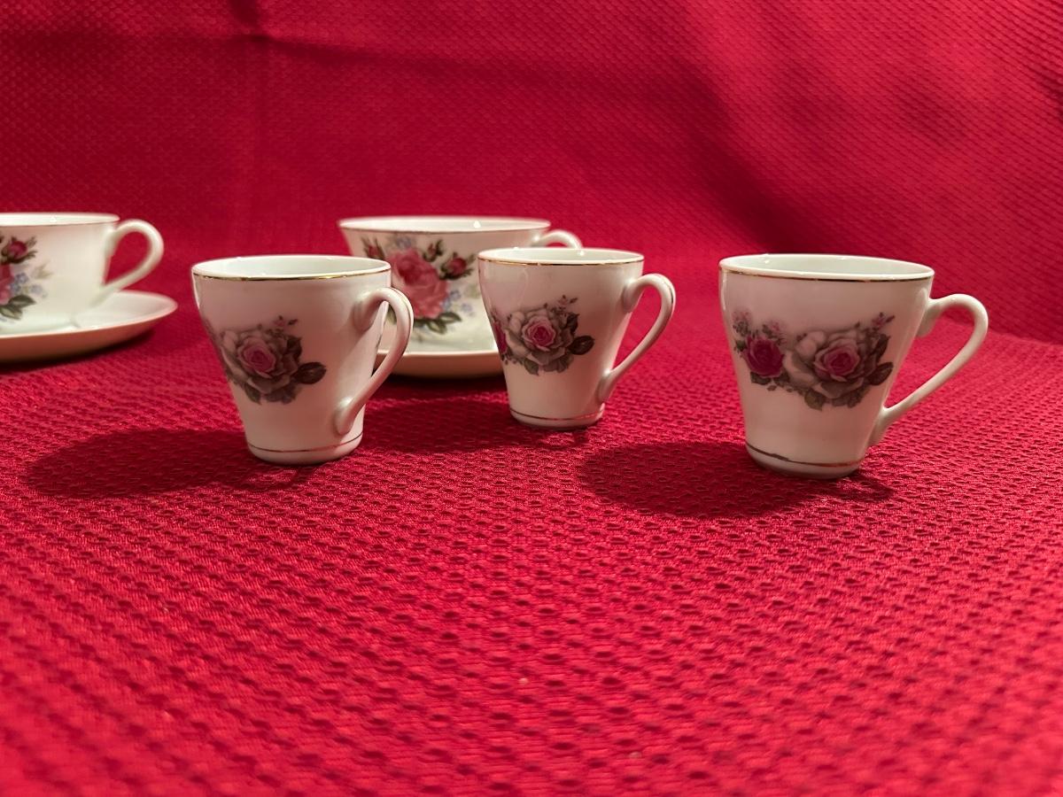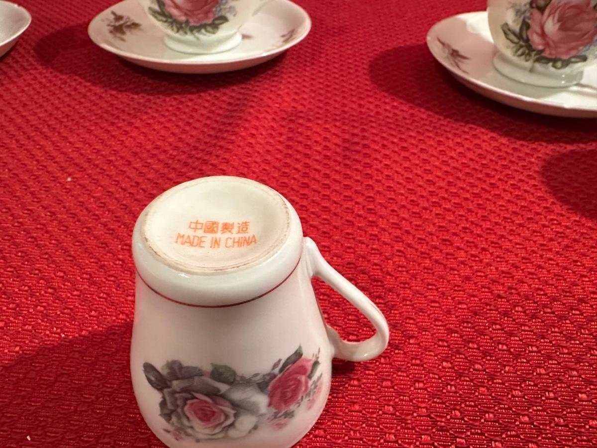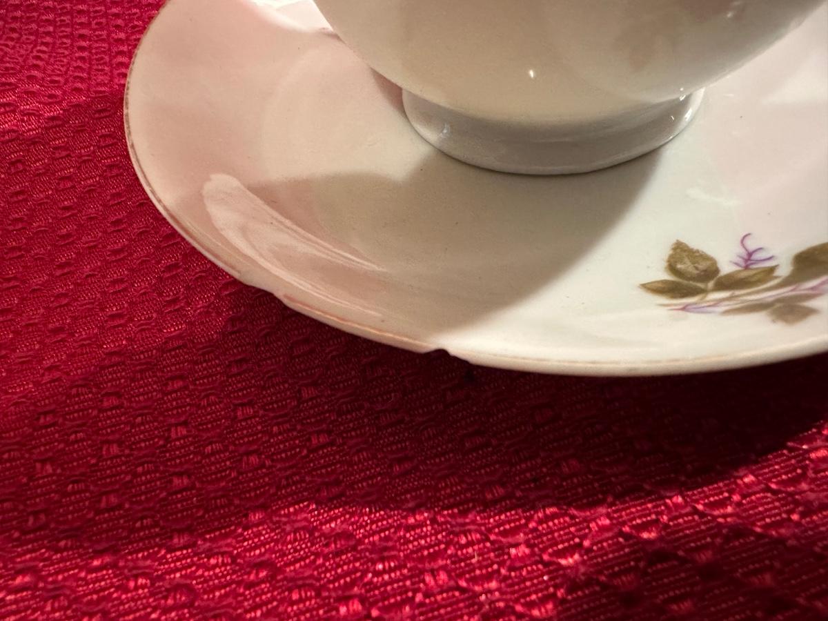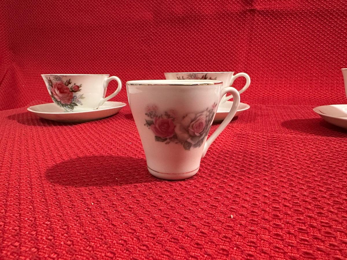 PRETTY ROSE TEA CUPS CREAMER AND SUGAR