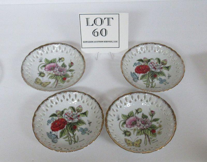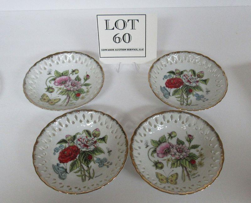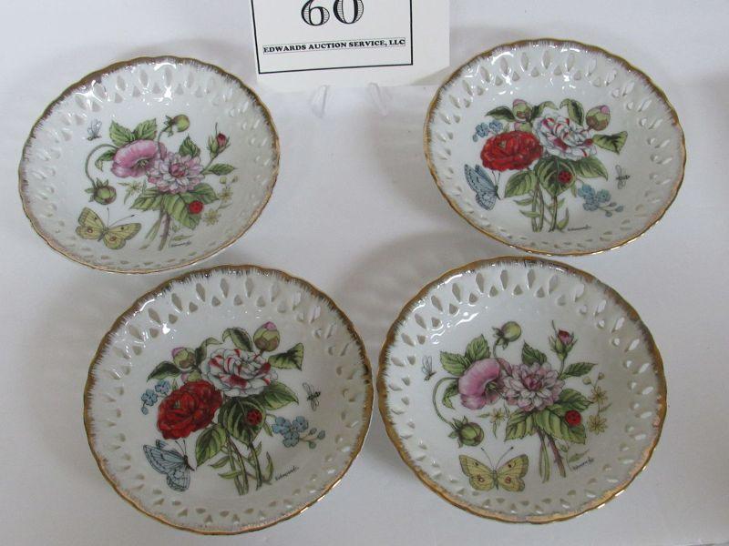 Pretty Set of 4 Small Butterfly Bowls Signed Edmunds