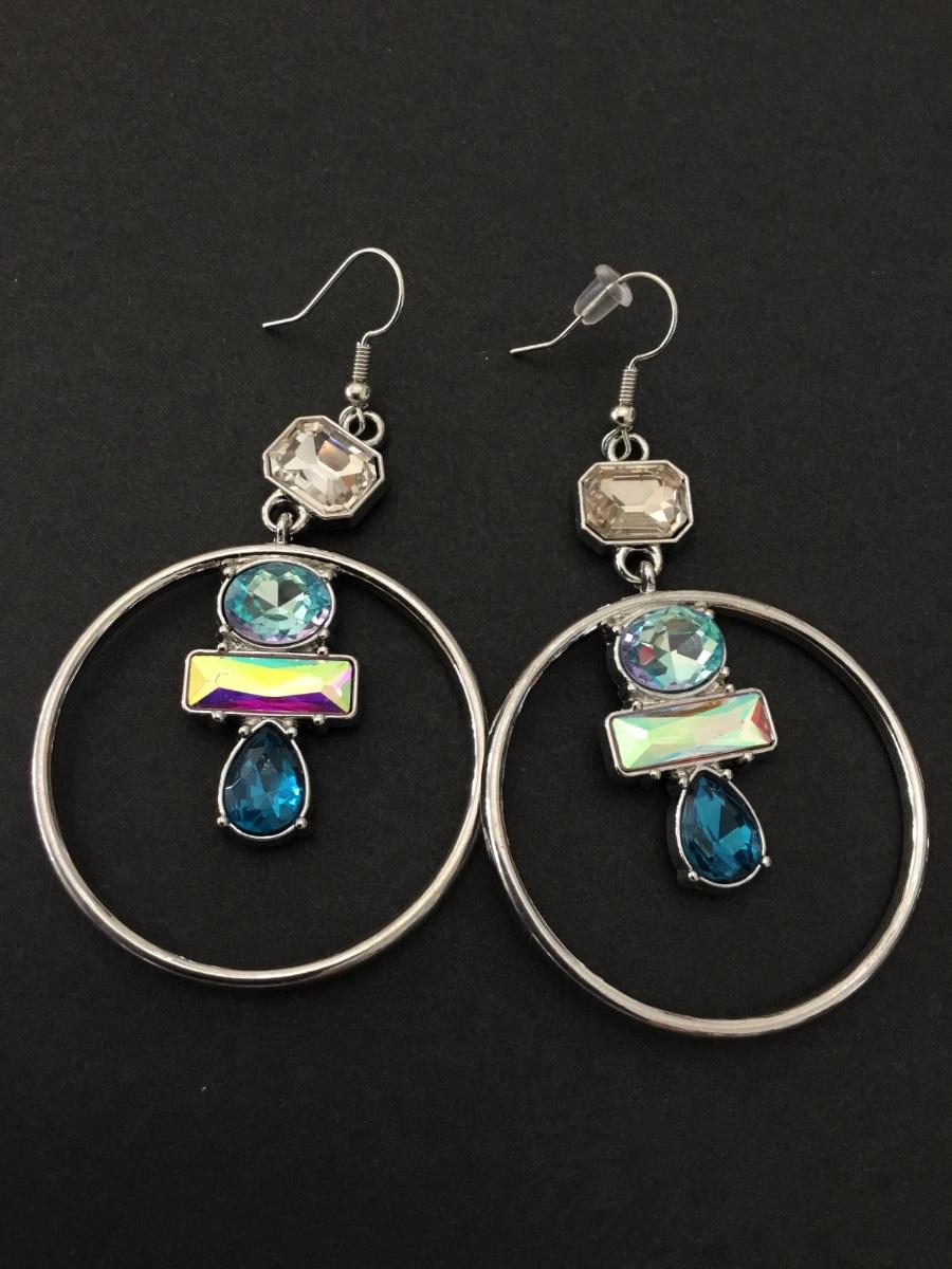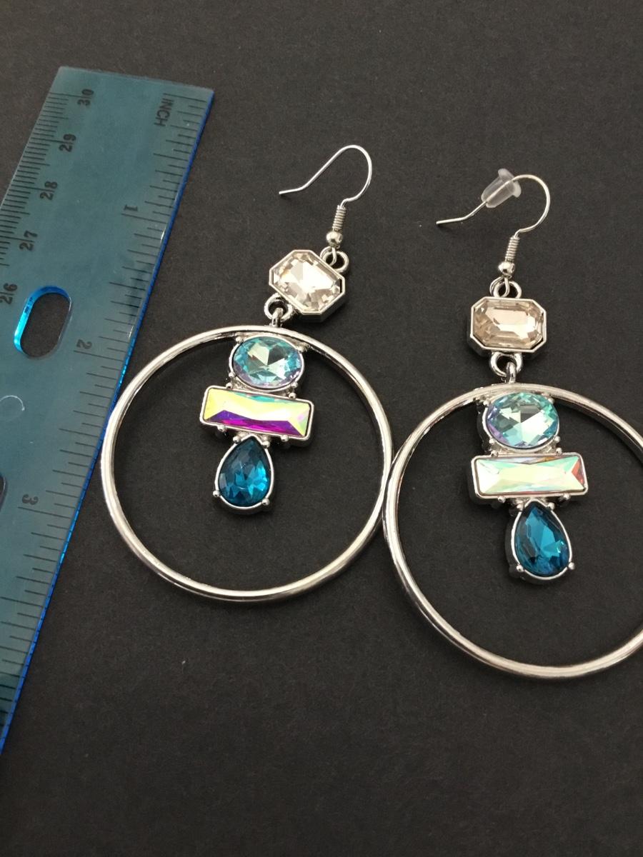 Pretty silver, toned, rhinestone statement hoop earrings