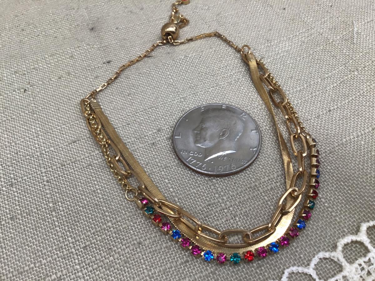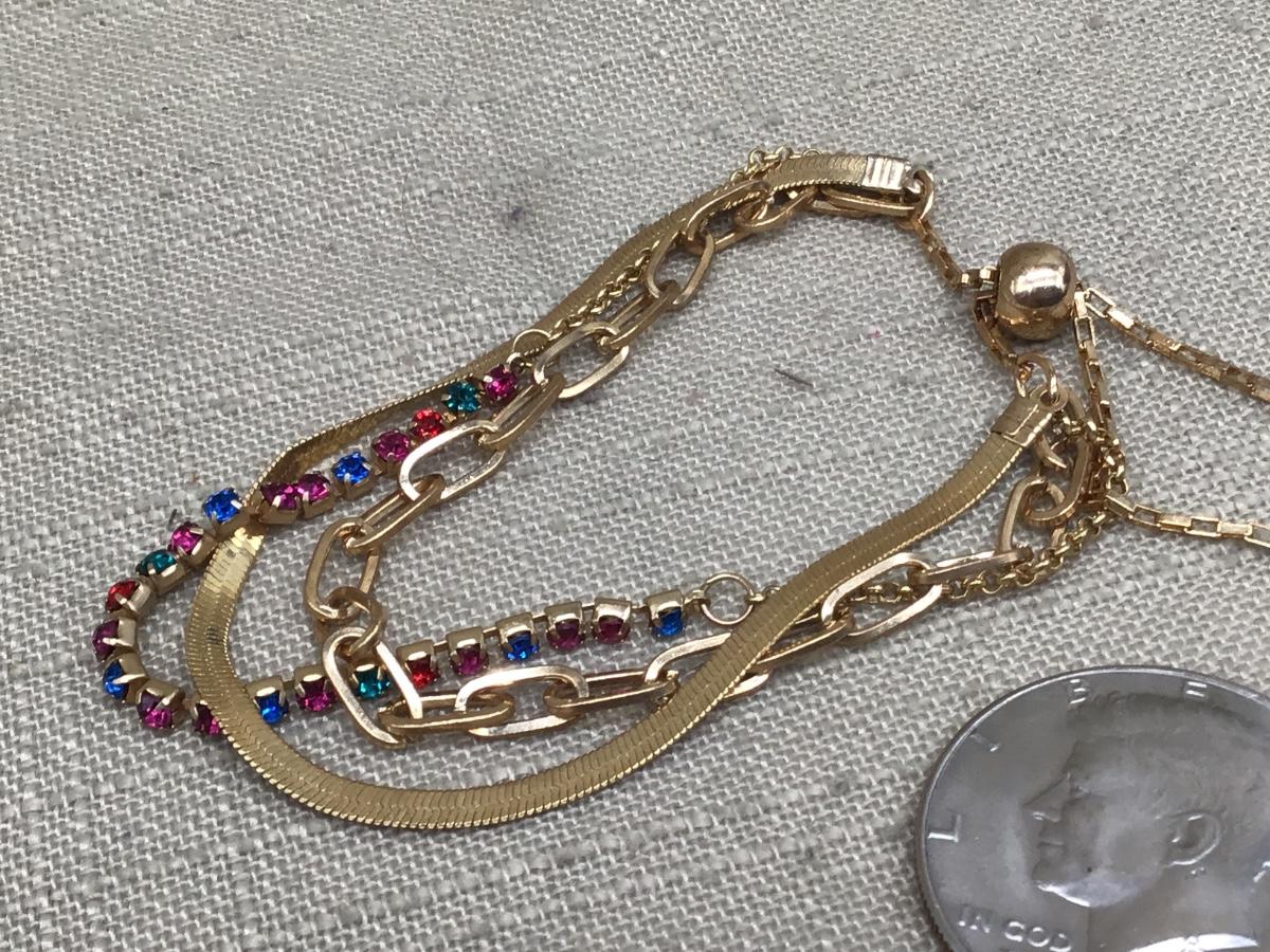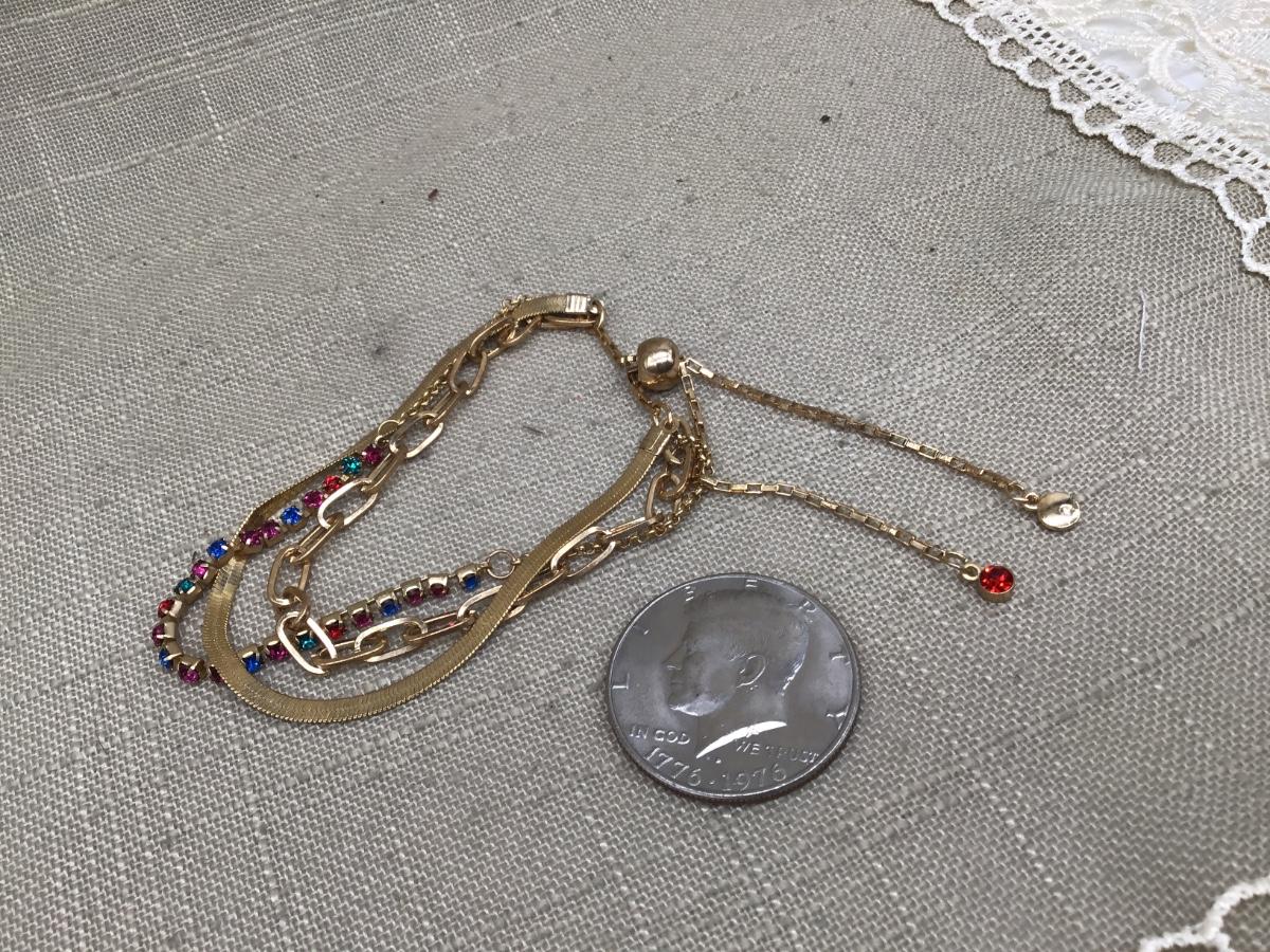 Pretty Slider 3 Strand Gold Tone Bracelet
