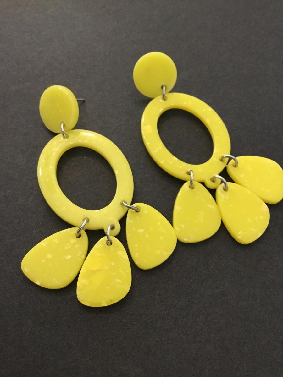 Pretty sunshine sparkly, yellow acrylic, dangle earrings