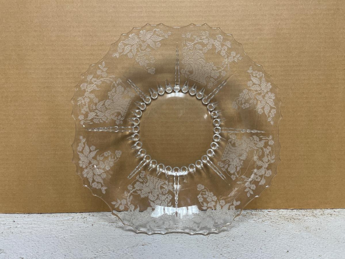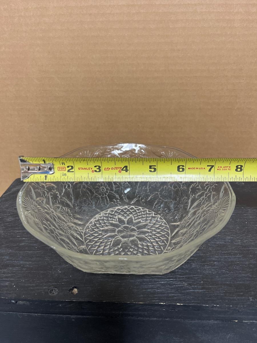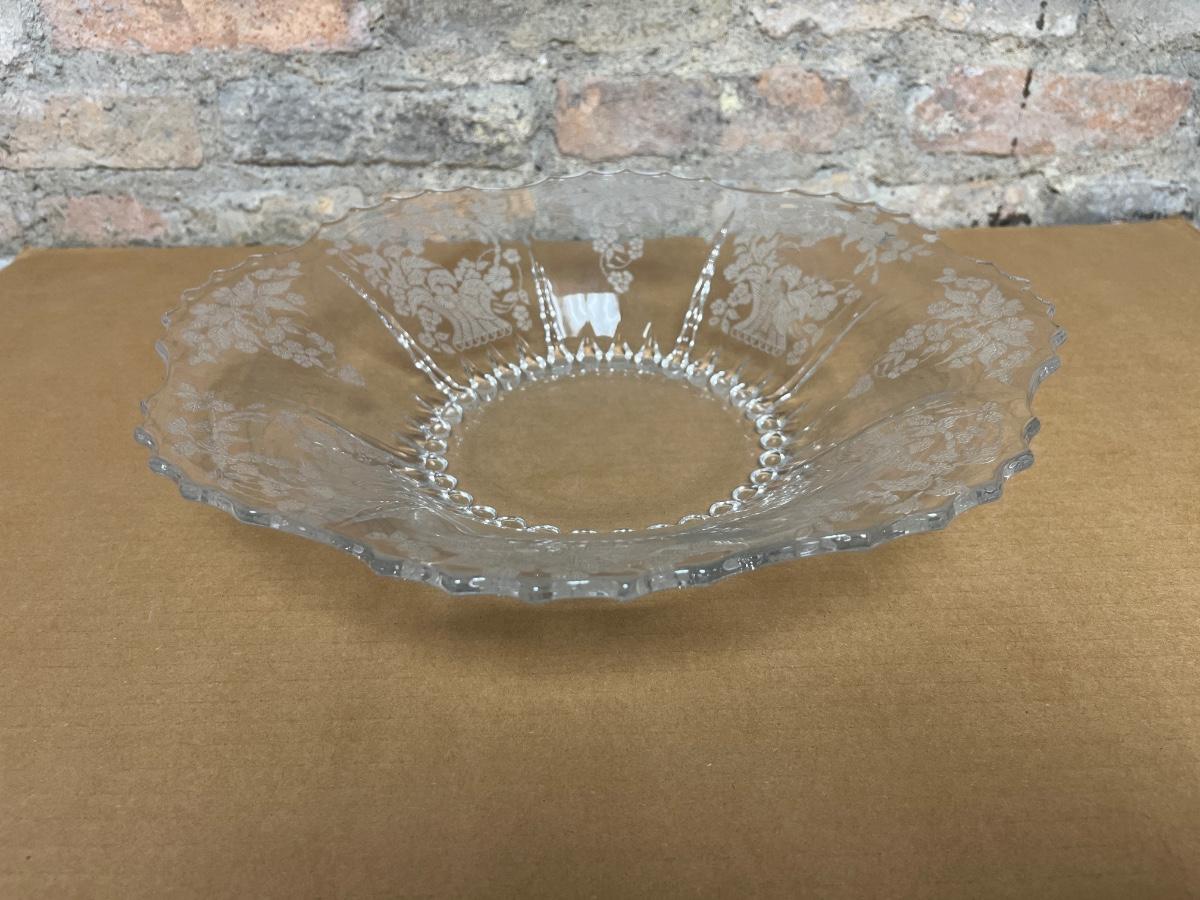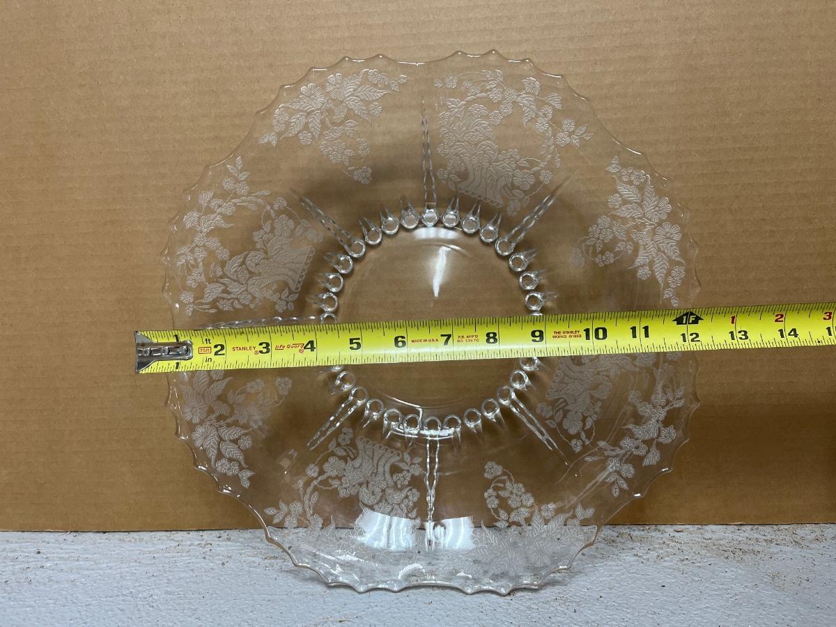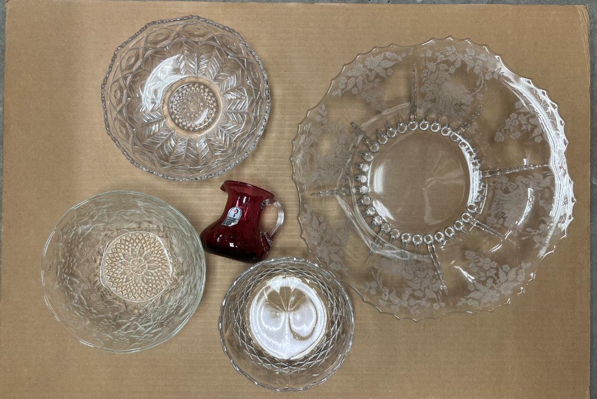 Stunning flower basket console bowl, Near cut bowl, Pineapple and floral vegetable bowl, and Pilgrim cranberry optic creamer