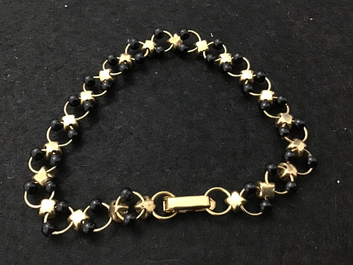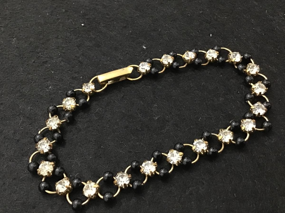 Pretty Vintage Black Bead Rhinestone Locking Bracelet