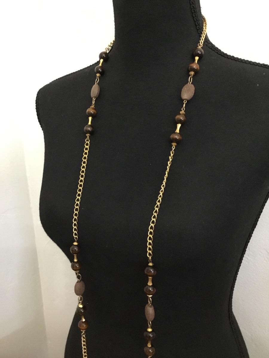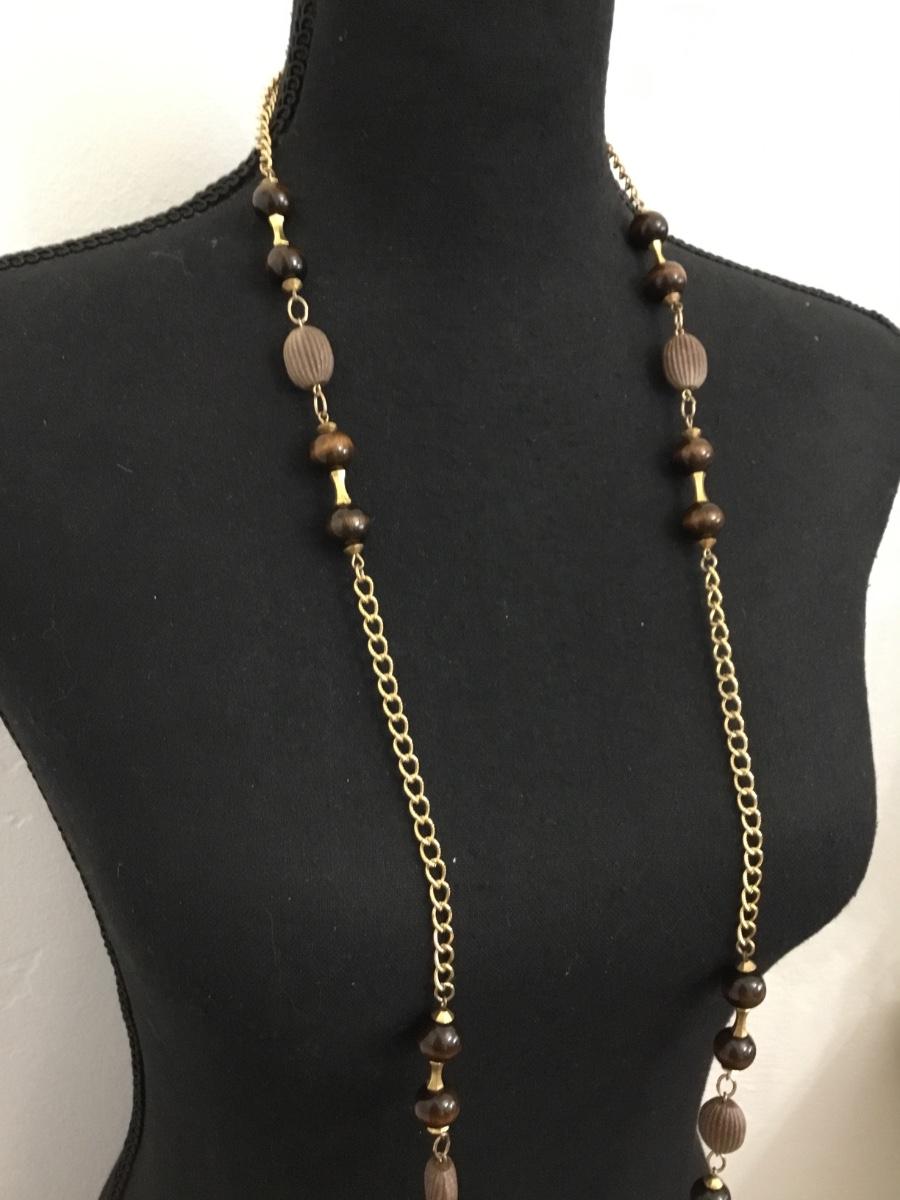 Pretty vintage, gold tone, faux, tigers, eye bead, long statement, necklace