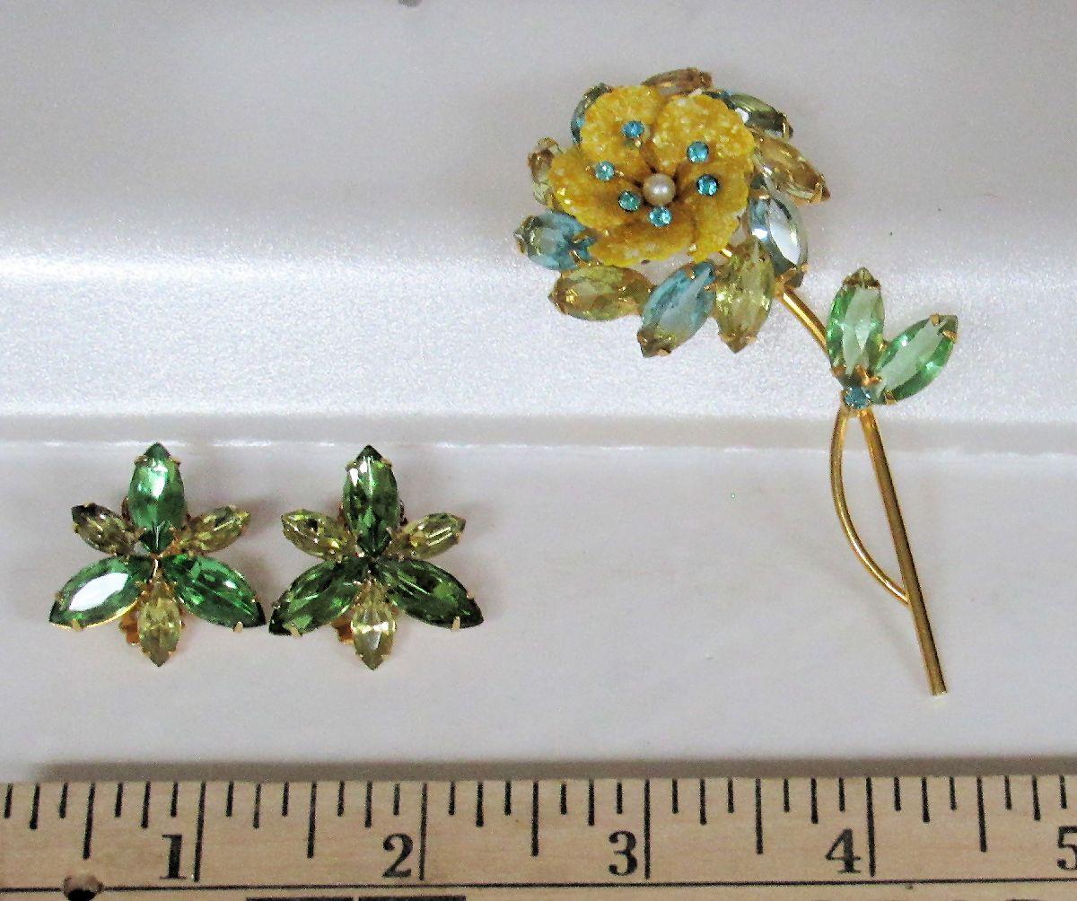 Pretty Vintage Rhinestone Earrings and Pin Lot