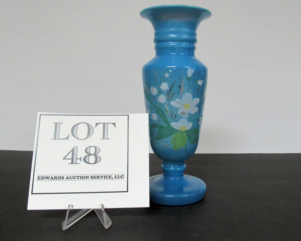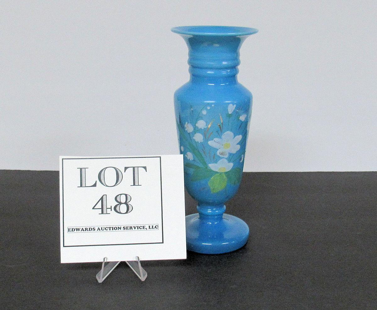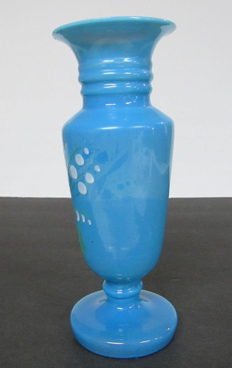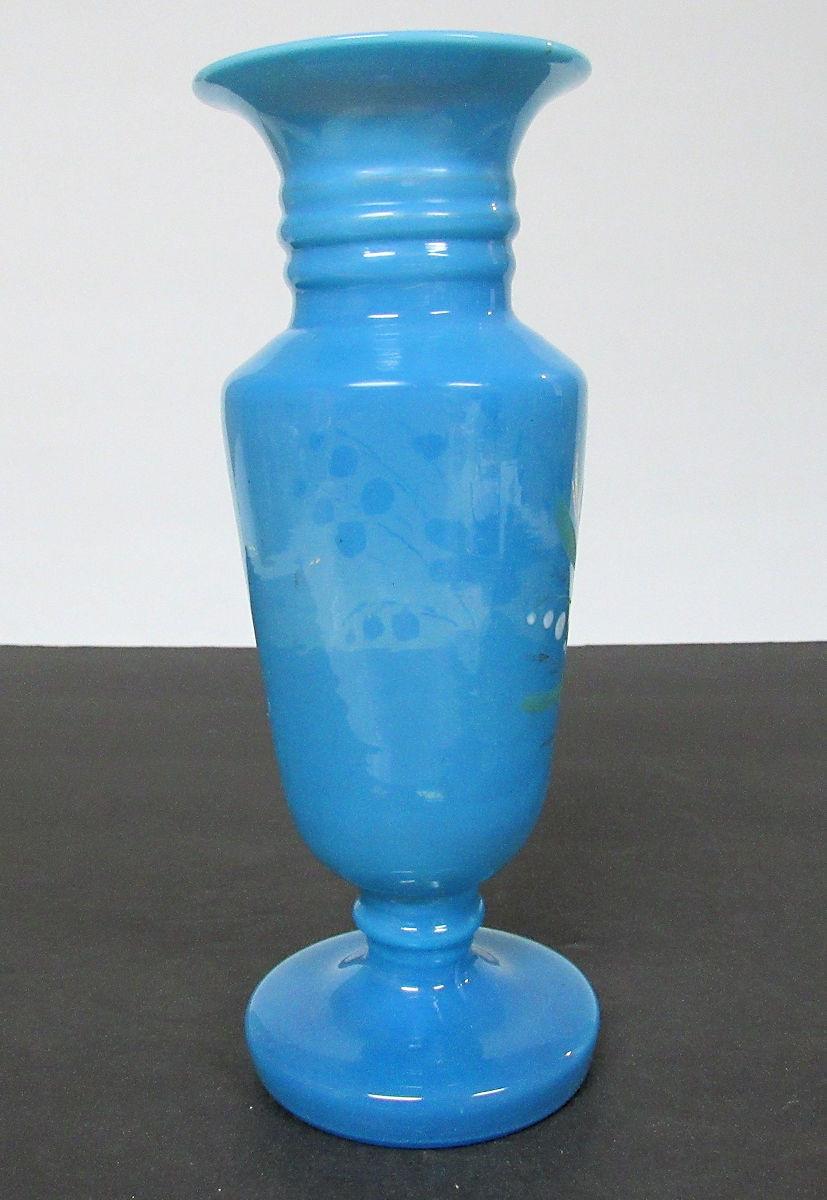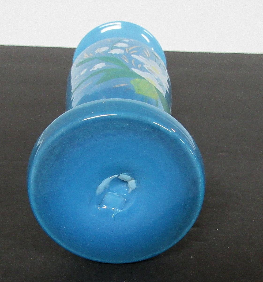 Pretty Vintage Vase Sky Blue With Floral Design, Unmarked, Great Pontil On Bottom