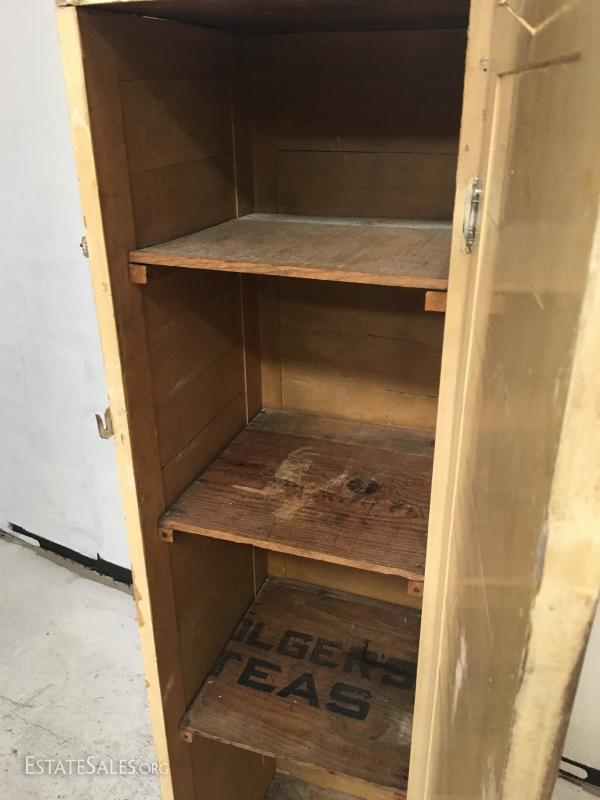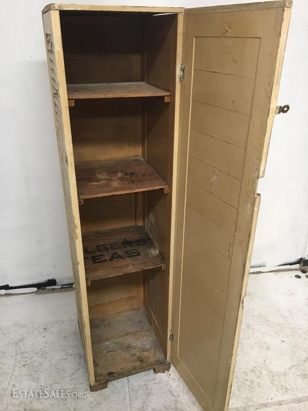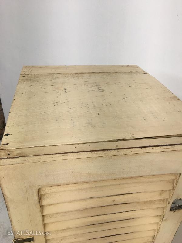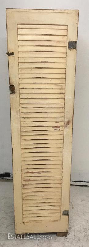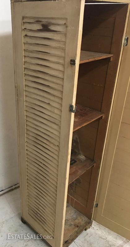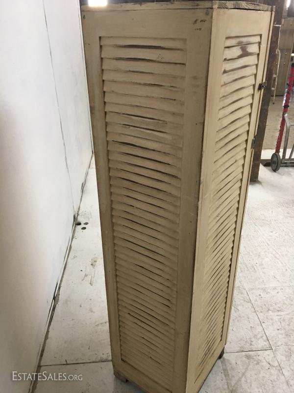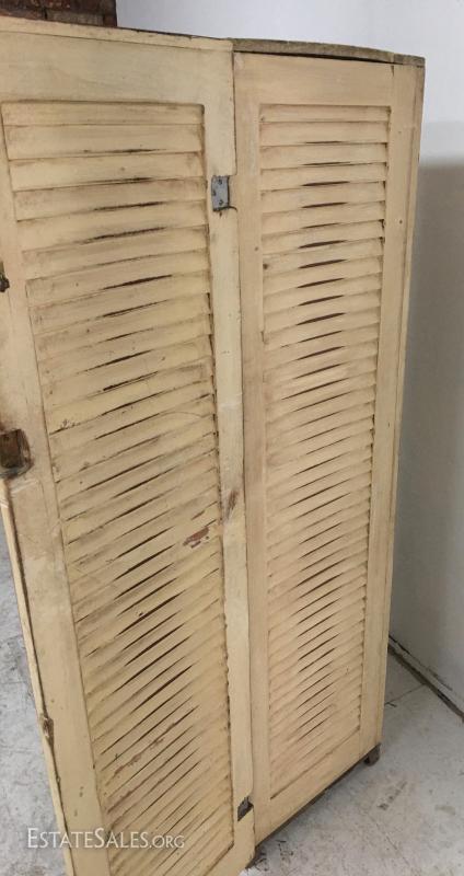Cupboard is made from old pine shutters, distressed paint finish. 15" wide, 17" deep and 61" tall.