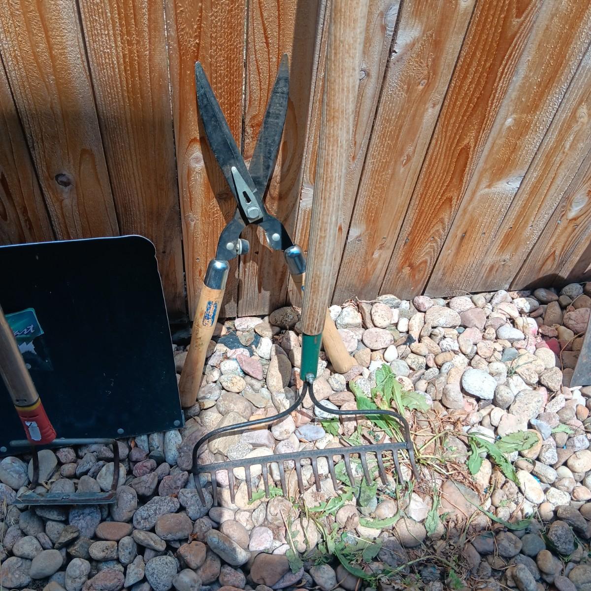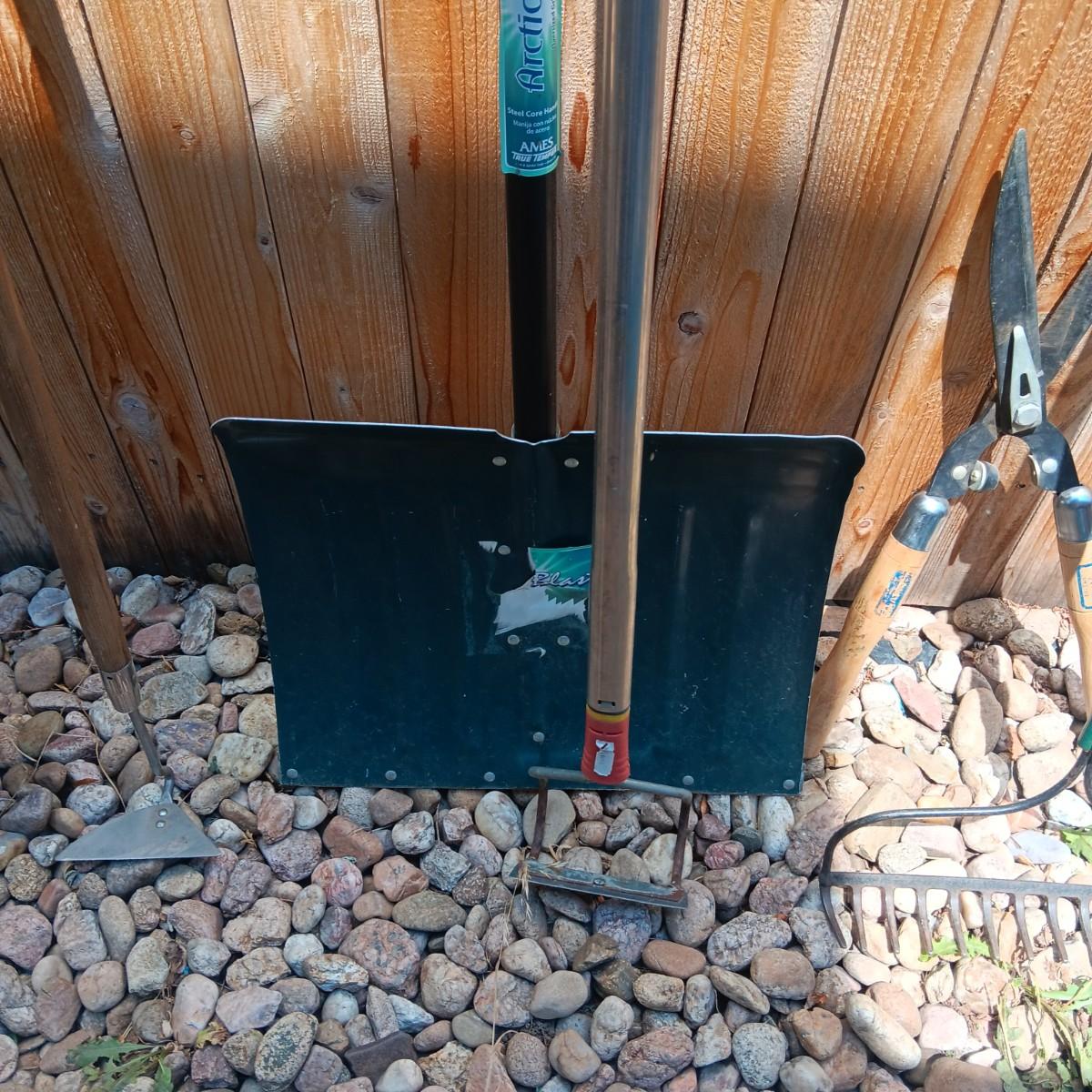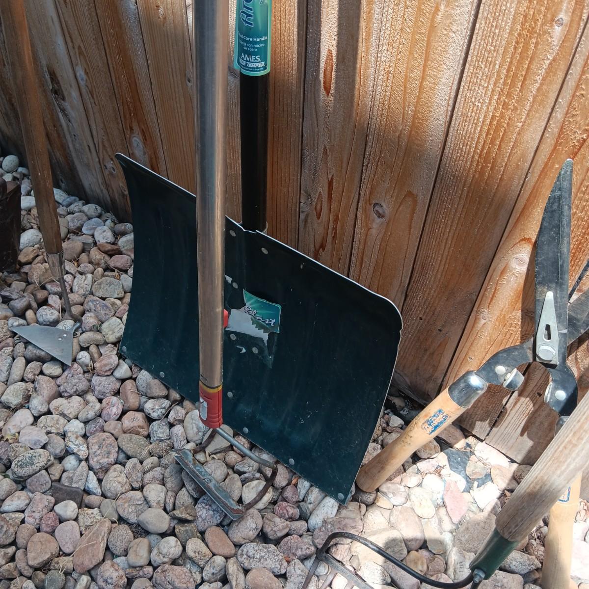PRIMATIVE SHOVEL AND OTHER YARD TOOLS