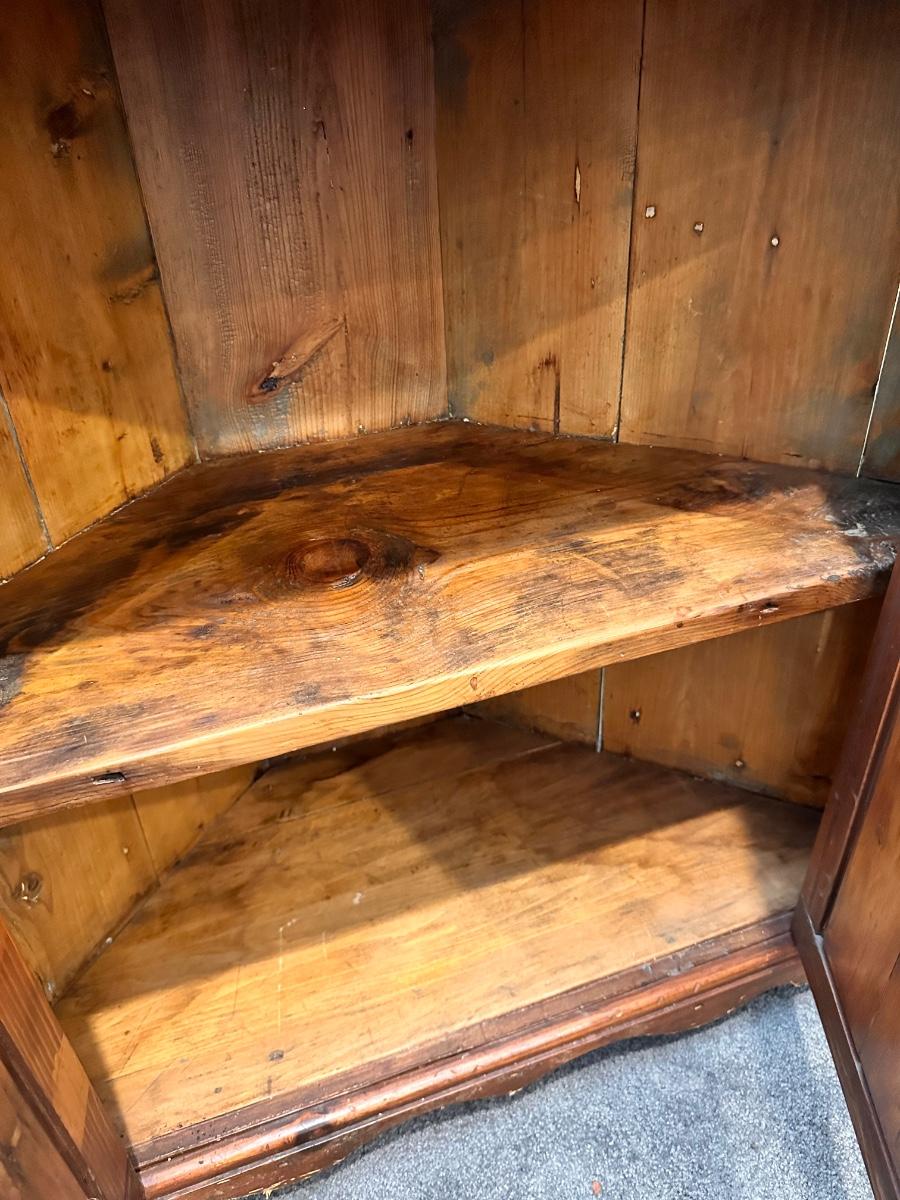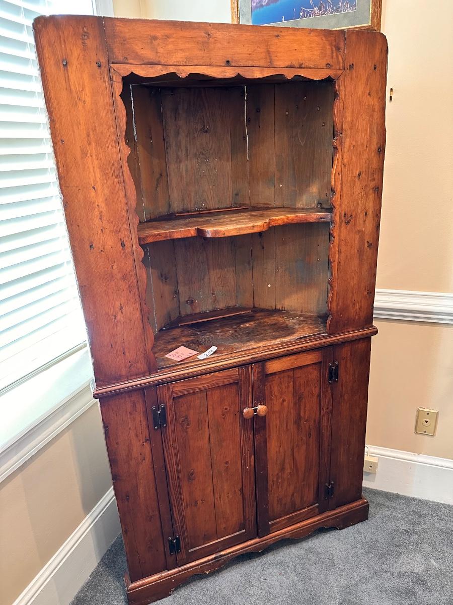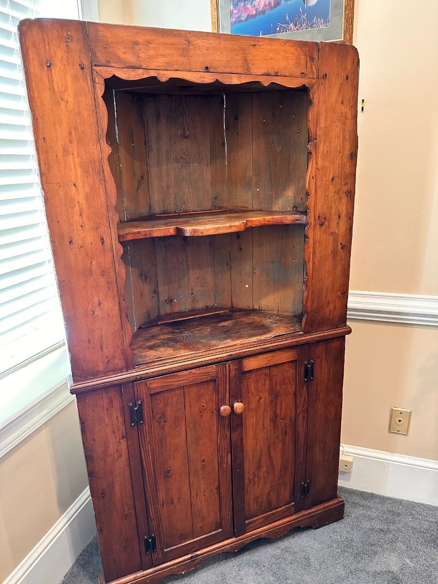 PRIMITAVE STYLE CORNER CABINET, 2 DOORS, 2 SHELVES, 35X66.5X15