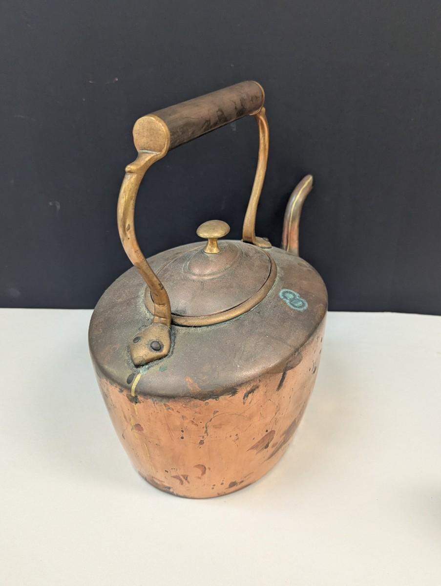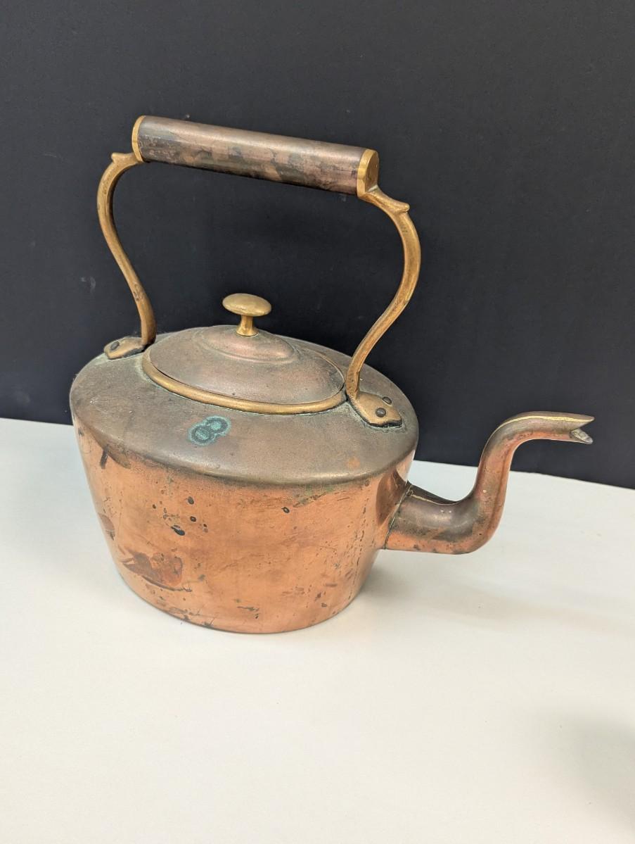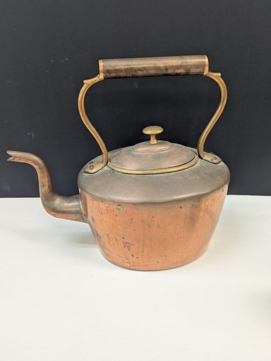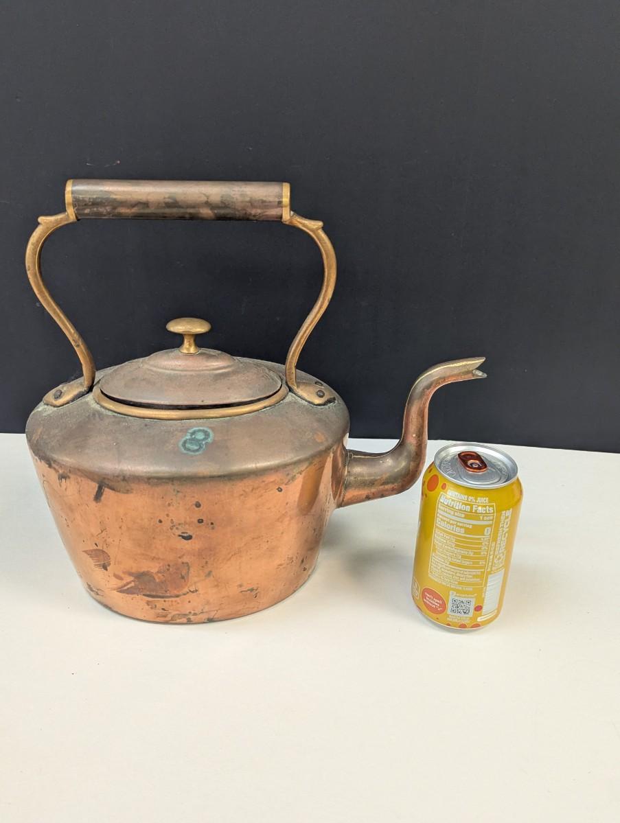 Primitive American Handmade Copper Tea Kettle With Lid 12"